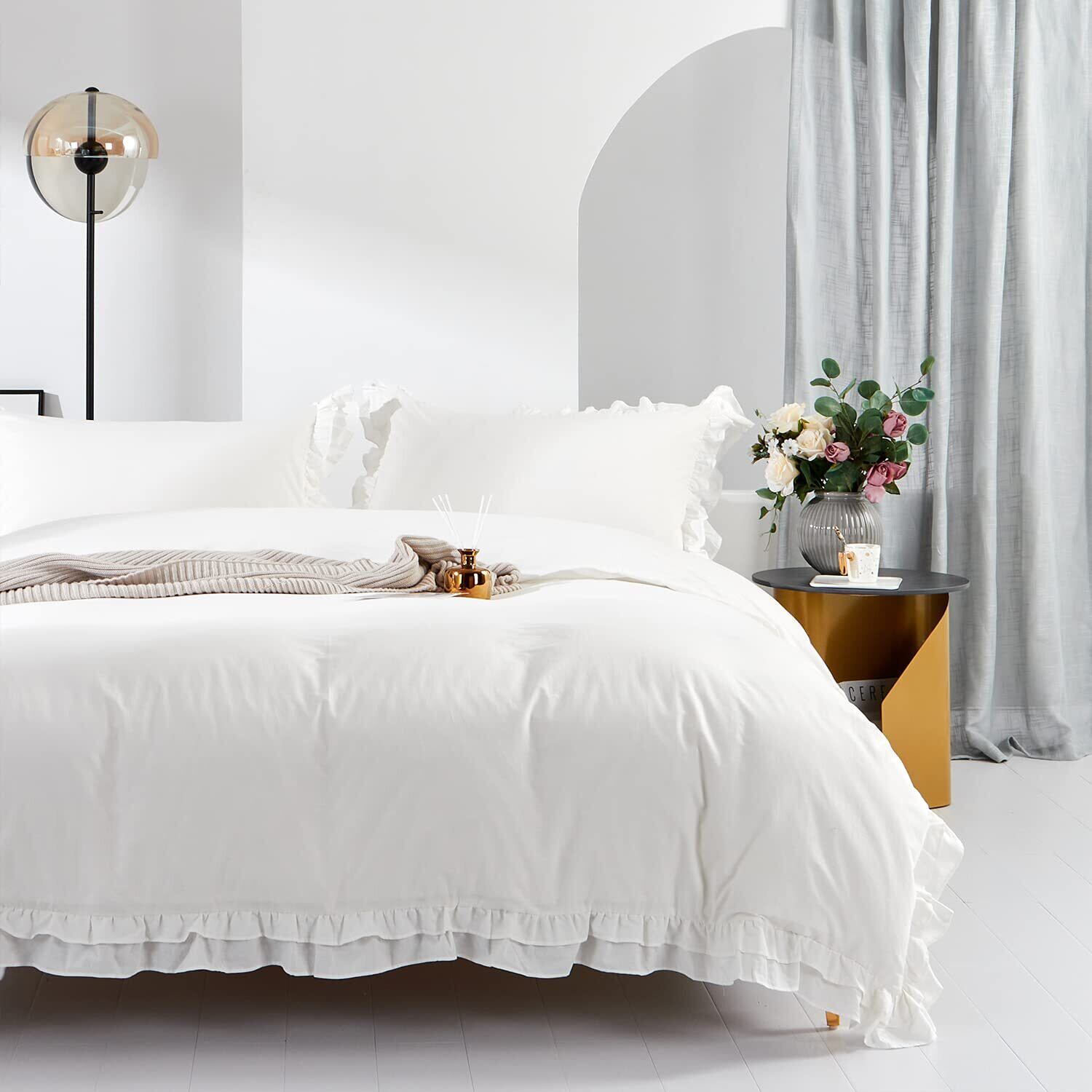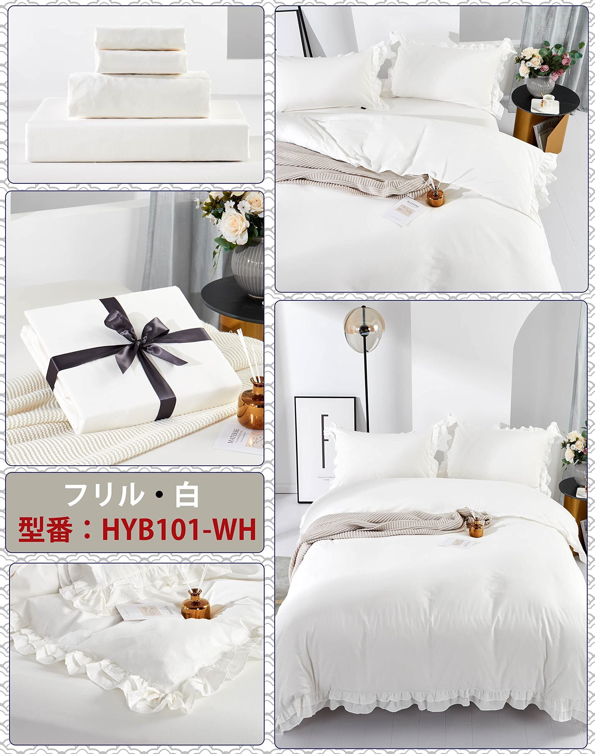 【在庫処分】MILDLY 布団カバーセット シングル 4点セット 姫系 フリル 掛布団カバー ボックスシーツ 枕カバー(2枚入) 肌ざわりが良い 通気吸湿 リネンの質感 ベッドカバー(フリル・ホワイト・シングル)
