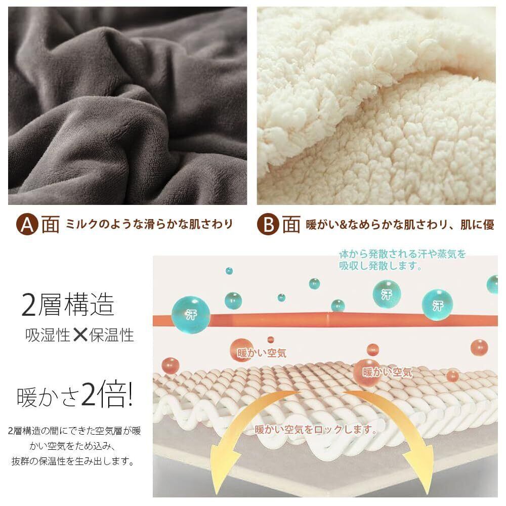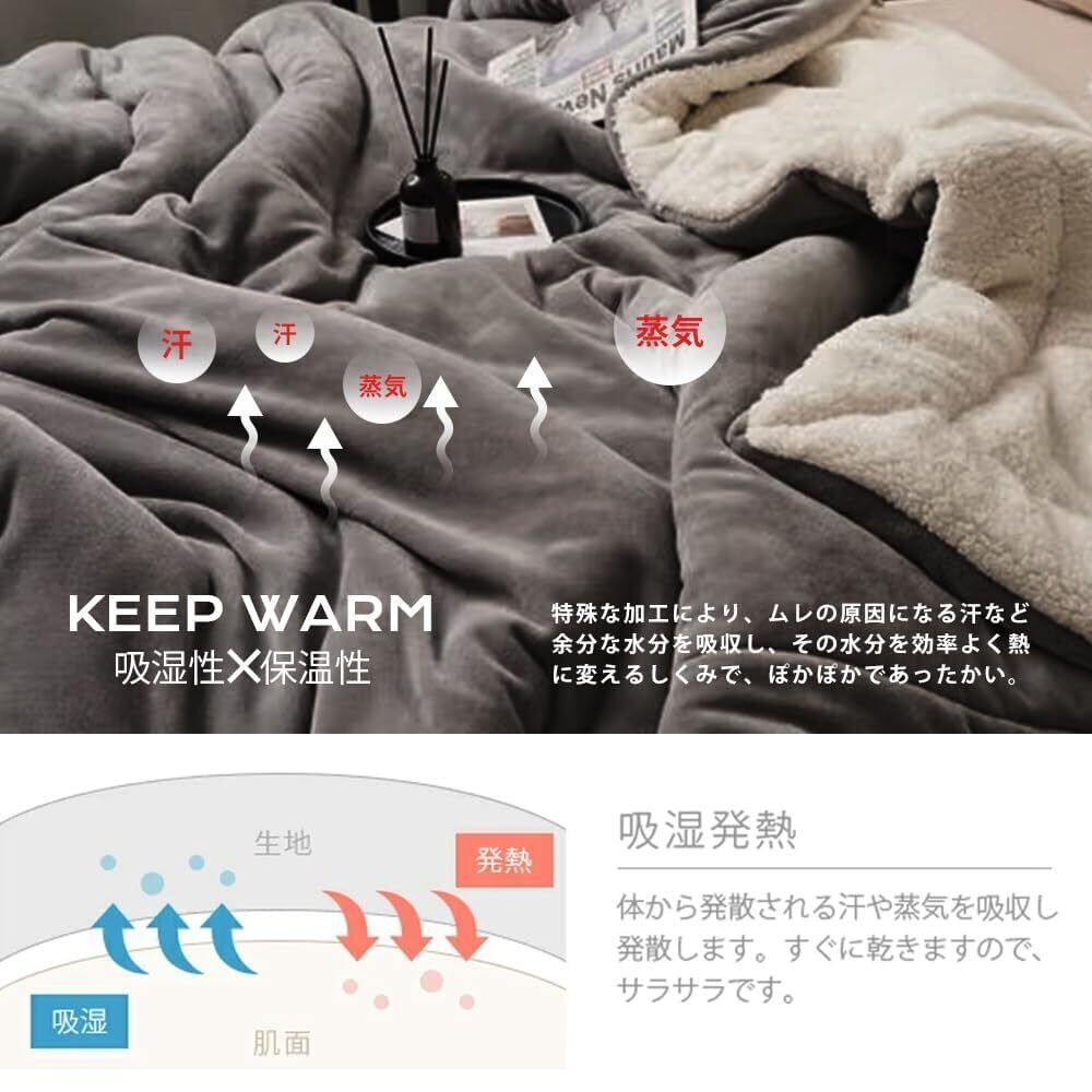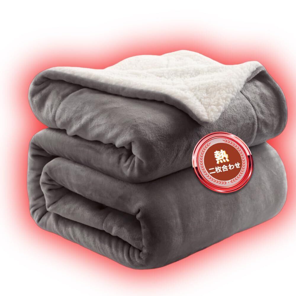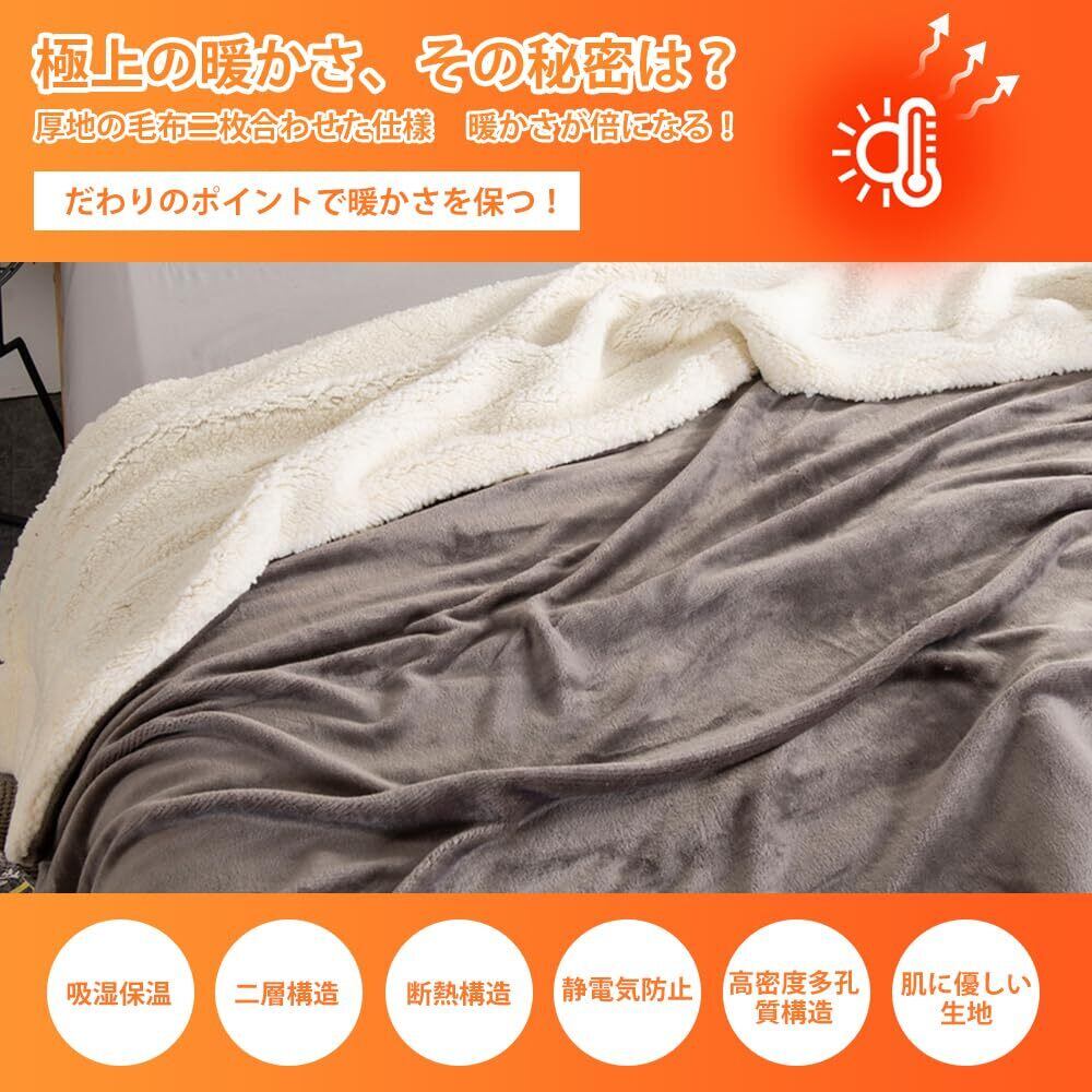 毛布 ブランケット あったか 真冬掛け毛布 シングル 厚手 【二重構造: マイクロファイバー フランネル+ 高密度シープボア】 リバーシブル 二枚合わせ 暖かい もうふ 掛け毛布 毛抜けない 静電気防止 肌ふとん 柔らかく ふわふわ 冷え対策 洗える 吸湿発熱 昼寝(ダークグレー(2枚合わせ)200*230)
