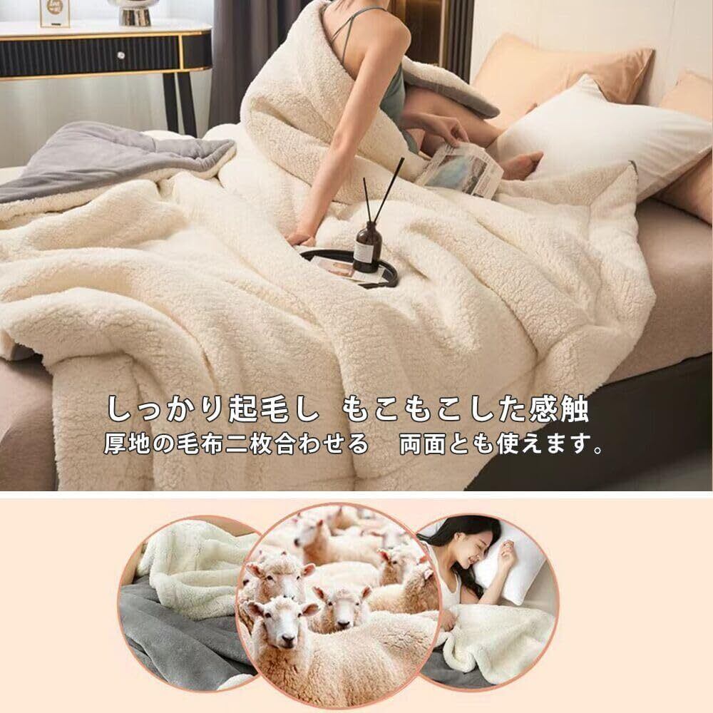 【人気商品】毛布 ブランケット あったか 真冬掛け毛布 シングル 厚手 【二重構造: マイクロファイバー フランネル+ 高密度シープボア】 リバーシブル 二枚合わせ 暖かい もうふ 掛け毛布 毛抜けない 静電気防止 肌ふとん 柔らかく ふわふわ 冷え対策 洗える 吸湿発熱 昼寝(ダークグレー(2枚合わせ)200*230)