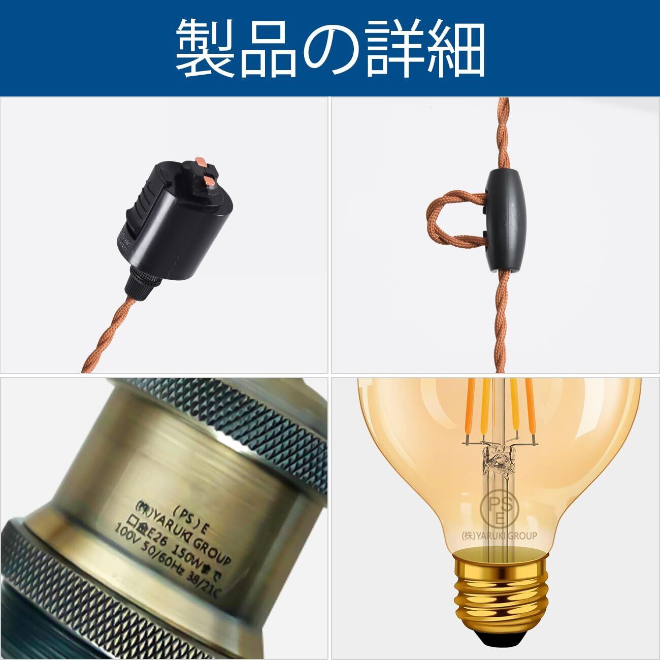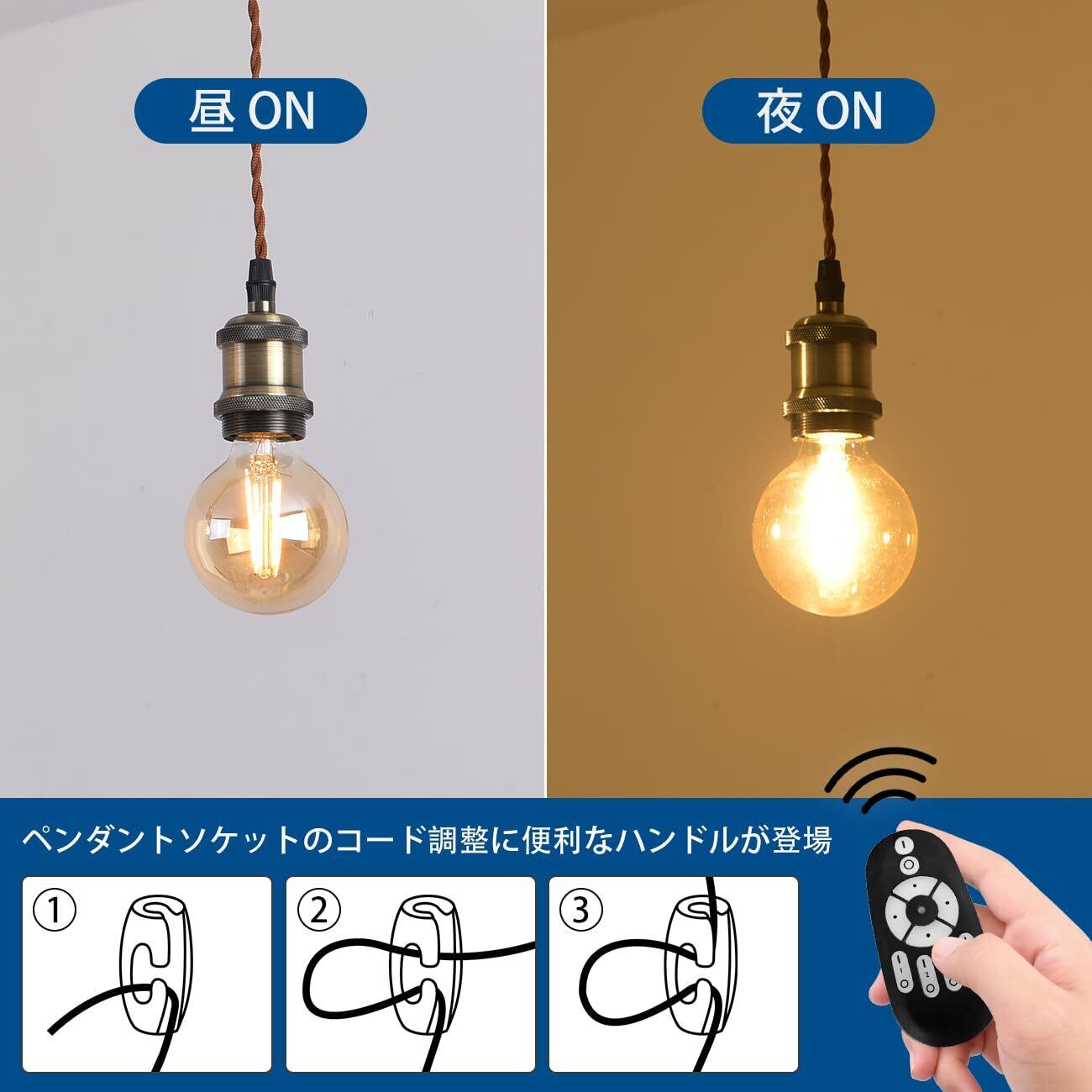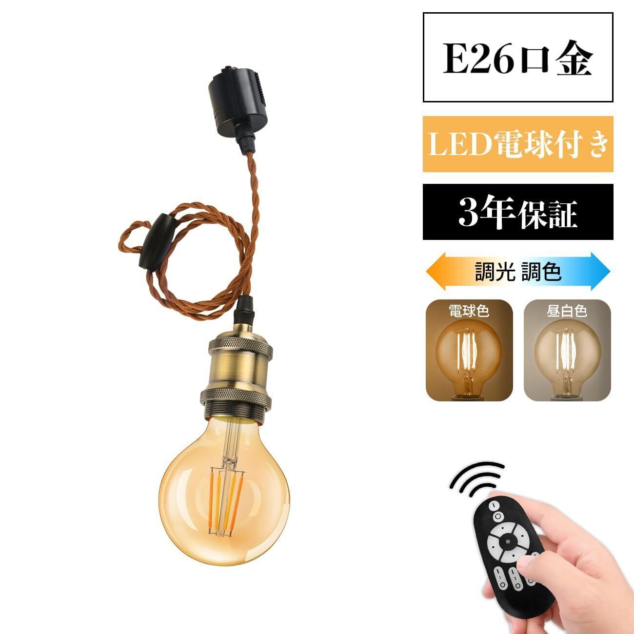 【商品情報】◉電球ソケット仕様:E26口金、コード長さは100cm調節可能、重量は約150g 、使用可能電球は口金E26 150Wまで(重量200gまで) ◉LED電球仕様:E26口金 、明るさ:720LM(調光可能)、消費電力:6W省エネ(60W形相当)、色温度:2200-6500K(調色可能)、サイズ:直径80㎜*高さ115㎜ ◉パッケージ:3灯セット+1個リモコン、説明書 ◉注意:物流の安全を保証するため、リモコンには電池は入っておりません。(電池別売)