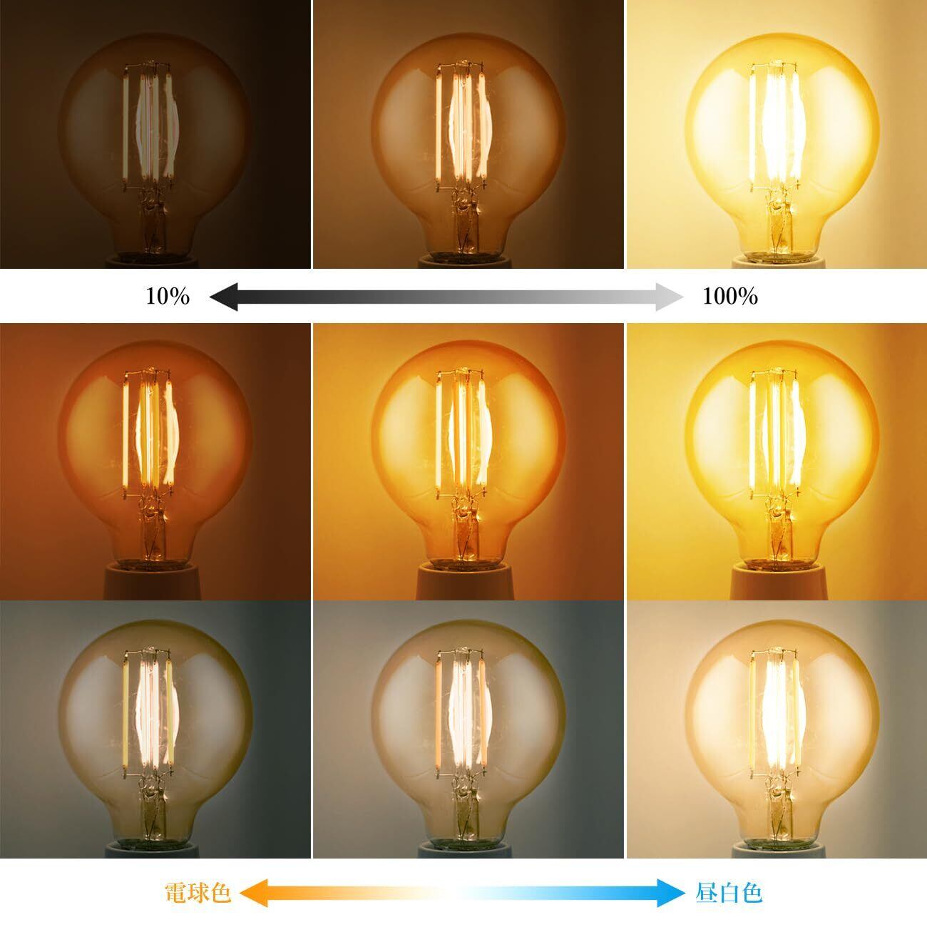 【90%省エネ&アンティーク風】消費電力6Wだけで、伝統的な白熱電球60W形相当、伝統的な白熱電球より約90%の電気代を省き、節電対策、電気代カット!!レトロ電球は照明自体を超えており、照らすだけではなく、芸術にも追従し、アートな光が空間を飾って、その材質と技術は製品自身にレトロで美しいファッションな外観を与えています。