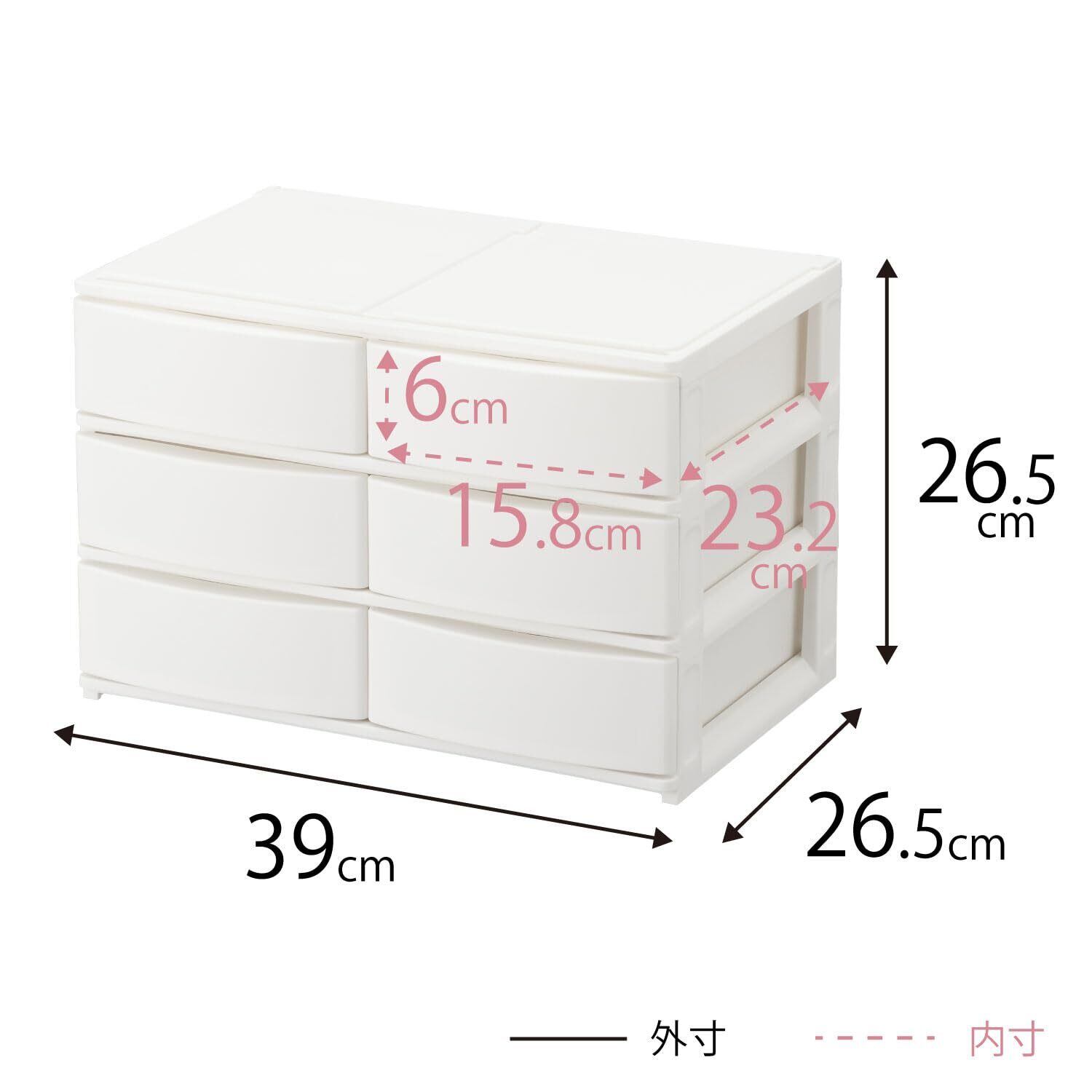 サンカ ポスデコ カラーボックスにピッタリフィット 引き出し収納ボックス ワイド 浅3段(引出し6個) ホワイト ずれを防ぐラバーストッパー 重ねて使える スタッキングチェスト ロック機構 日本製 カラーボックス 収納ケース 小物 衣装 ボックス (幅39x奥行26.5x高さ26.5cm) NpdW-EWH