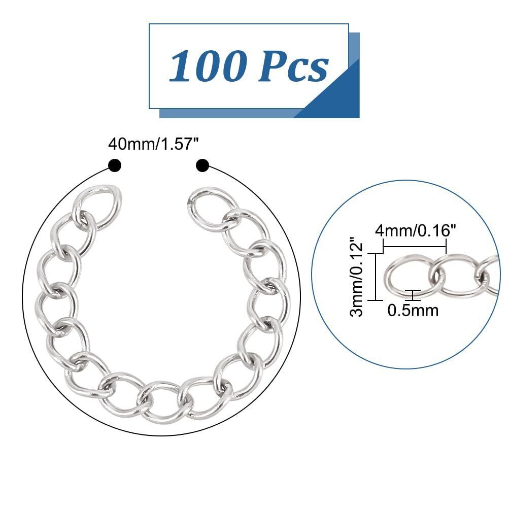 サイズ&入り数:接続チェーン:長さ:40mm、太め:3mm;100本入り;色:ステンレス色;素材:304ステンレススチール;想像力によりおしゃれなジュエリーがDIYできます!