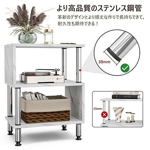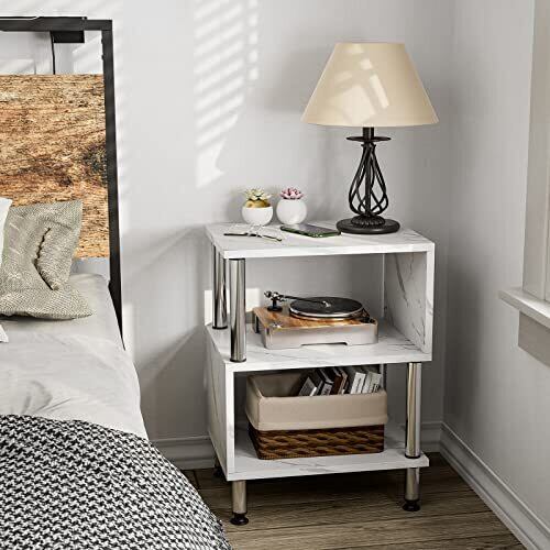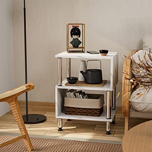 FryLR サイドテーブル おしゃれ S字ラック 40*29*51cm 木目調 大理石柄 オープンラック エンドテーブル 寝室 ソファ ベッド横 ジグザグラック 見せる収納 サイドラック 3段 収納棚(ホワイト大理石柄)