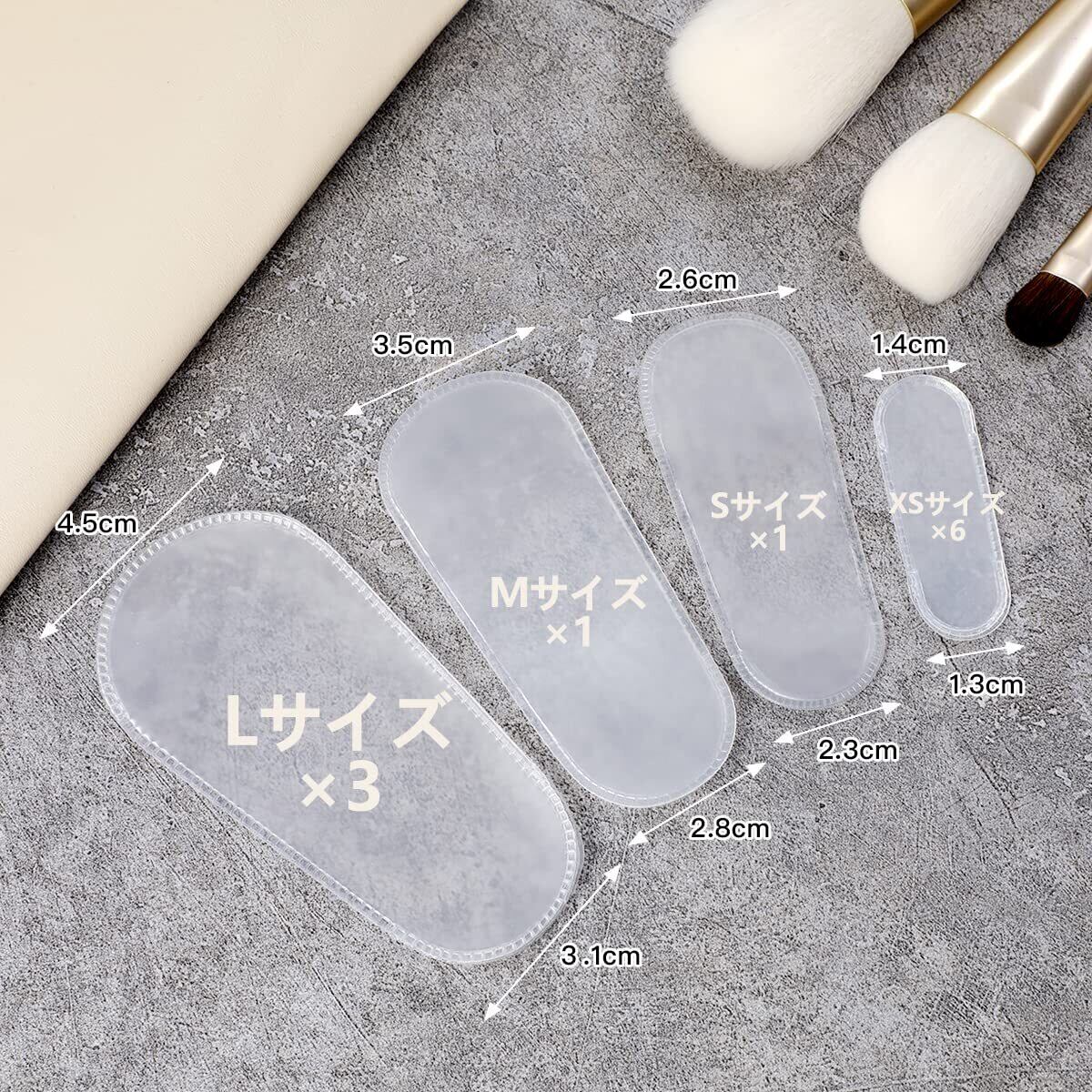 【商品仕様】チークブラシ用のLサイズ3枚、アイシャドウブラシ用Mサイズ1枚、リップブラシ用Sサイズ1枚、アイブロウブラシ用XSサイズ6枚、計4種類、11枚のメイクブラシカバーセットです。