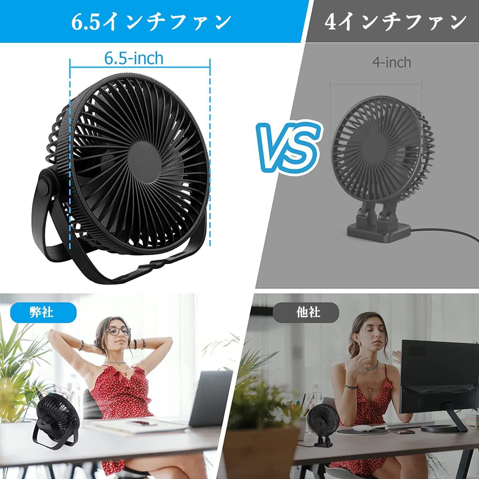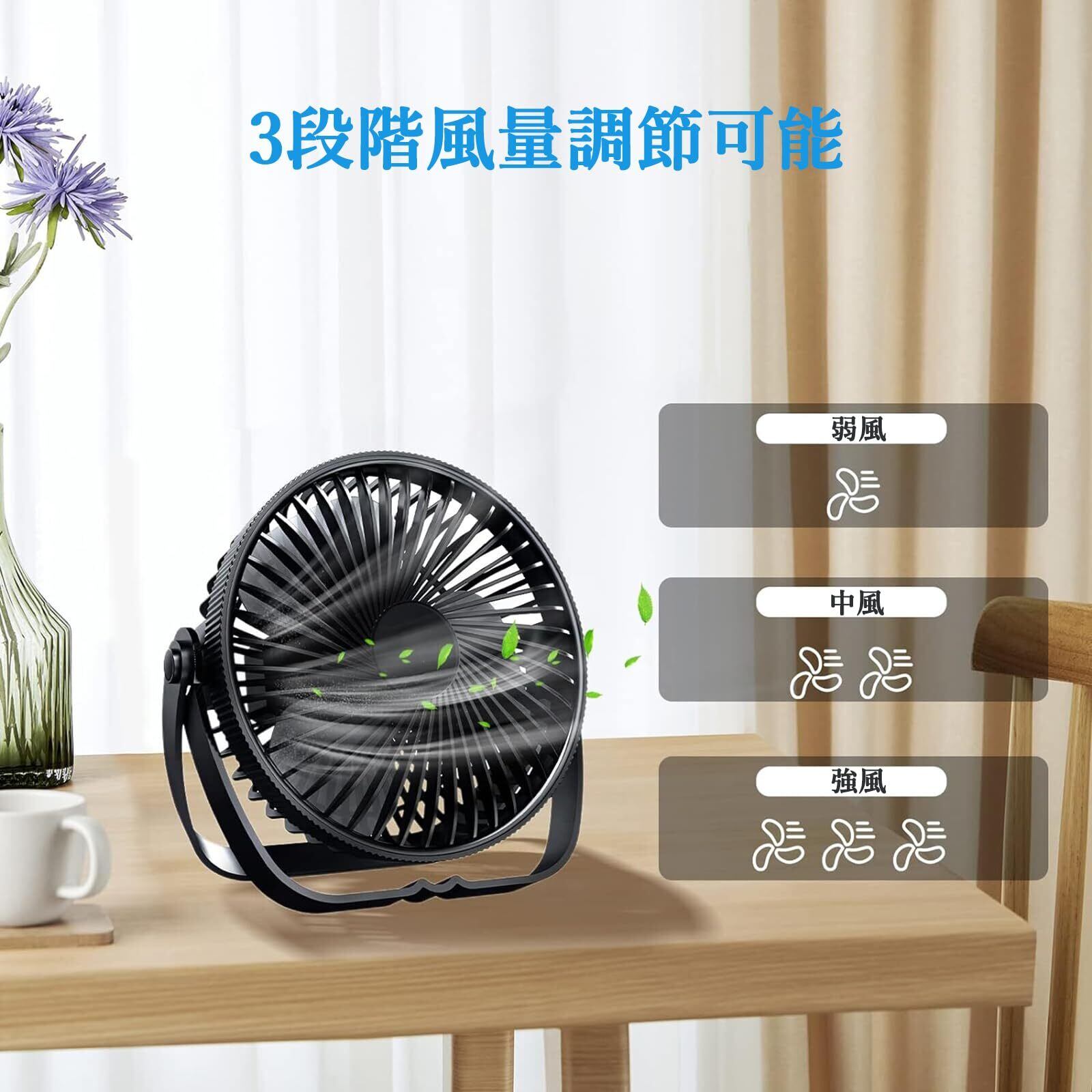 卓上扇風機 静音 USB扇風機 キャンプ扇風機 360度角度調整 3段階風量 パワフル送風 USB給電と充電式 TYPE-C デスクファン 吊り上げ ファン 熱中症対策 オフィス/家/学校/車/キッチン/アウトドアに適用 (ブラック)