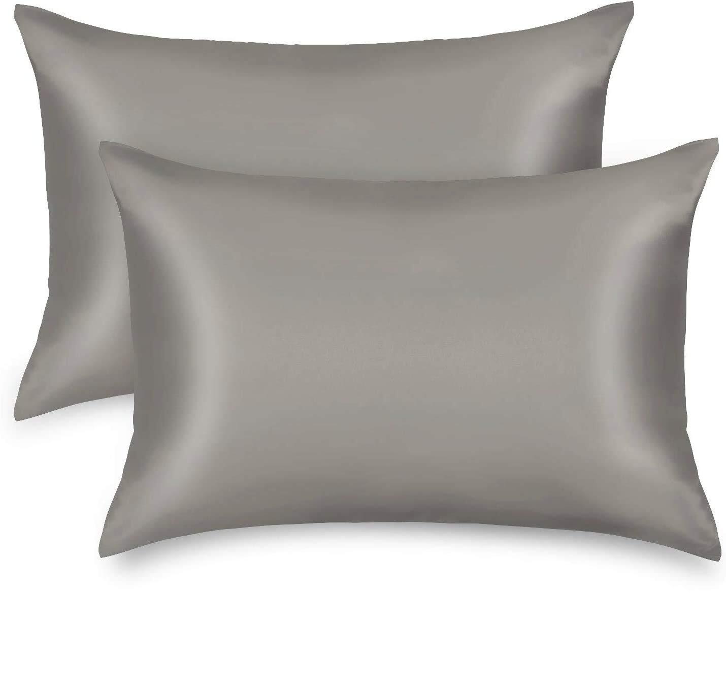 枕カバー 2枚セット サテンの枕カバー 封筒式ピローケース 美肌 美髪 両面シルクタイプ 滑らかな材質 静電気防止 (43*63, グレー)