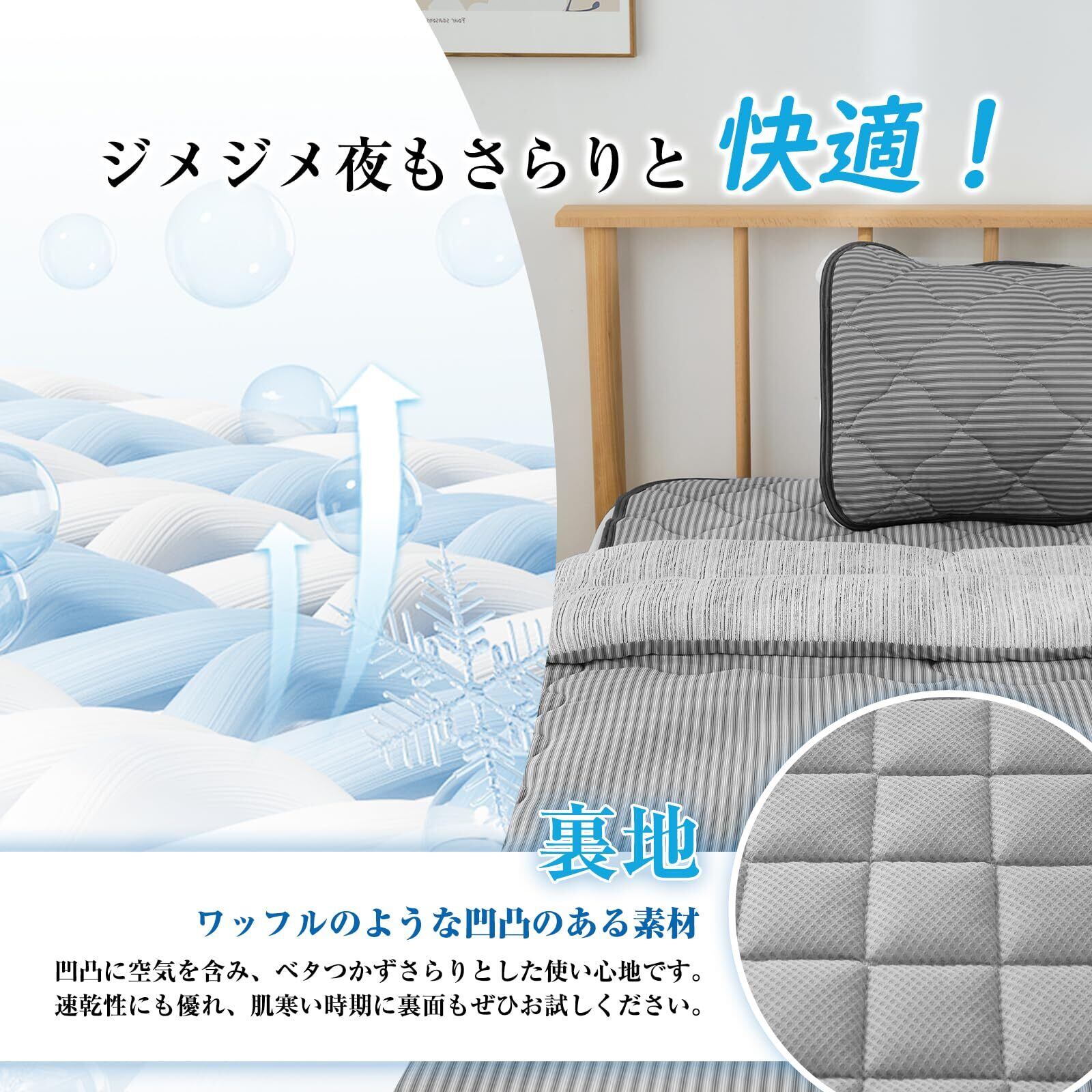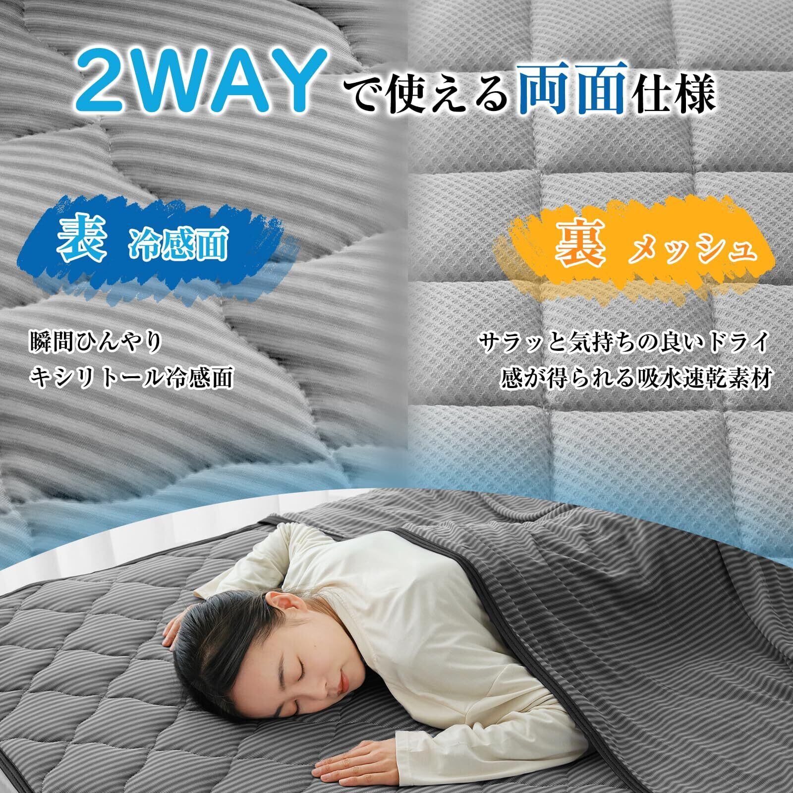 【リバーシブル仕様でロングシーズン快適】蒸し暑い時期に、ひんやり冷たい接触冷感面を使い、滑やかでサラッとひんやり肌触り、汗ばむ季節にぴったり。裏面はサラッと気持ちの良いワッフル生地、通気性、吸水速乾性にすぐれ、少し肌寒い時期に最適。リバーシブルで春~夏~秋まで快適に使える嬉しい一枚。