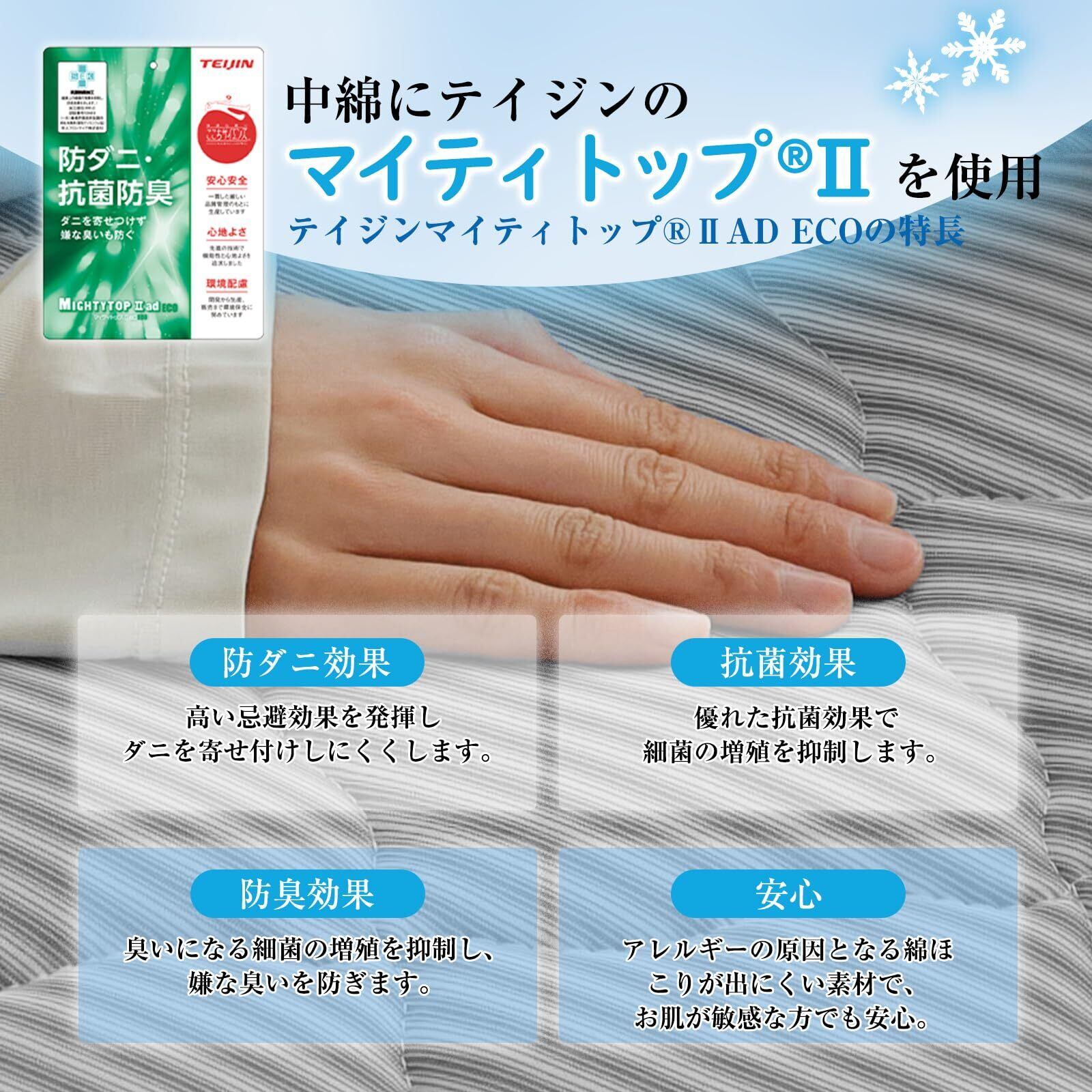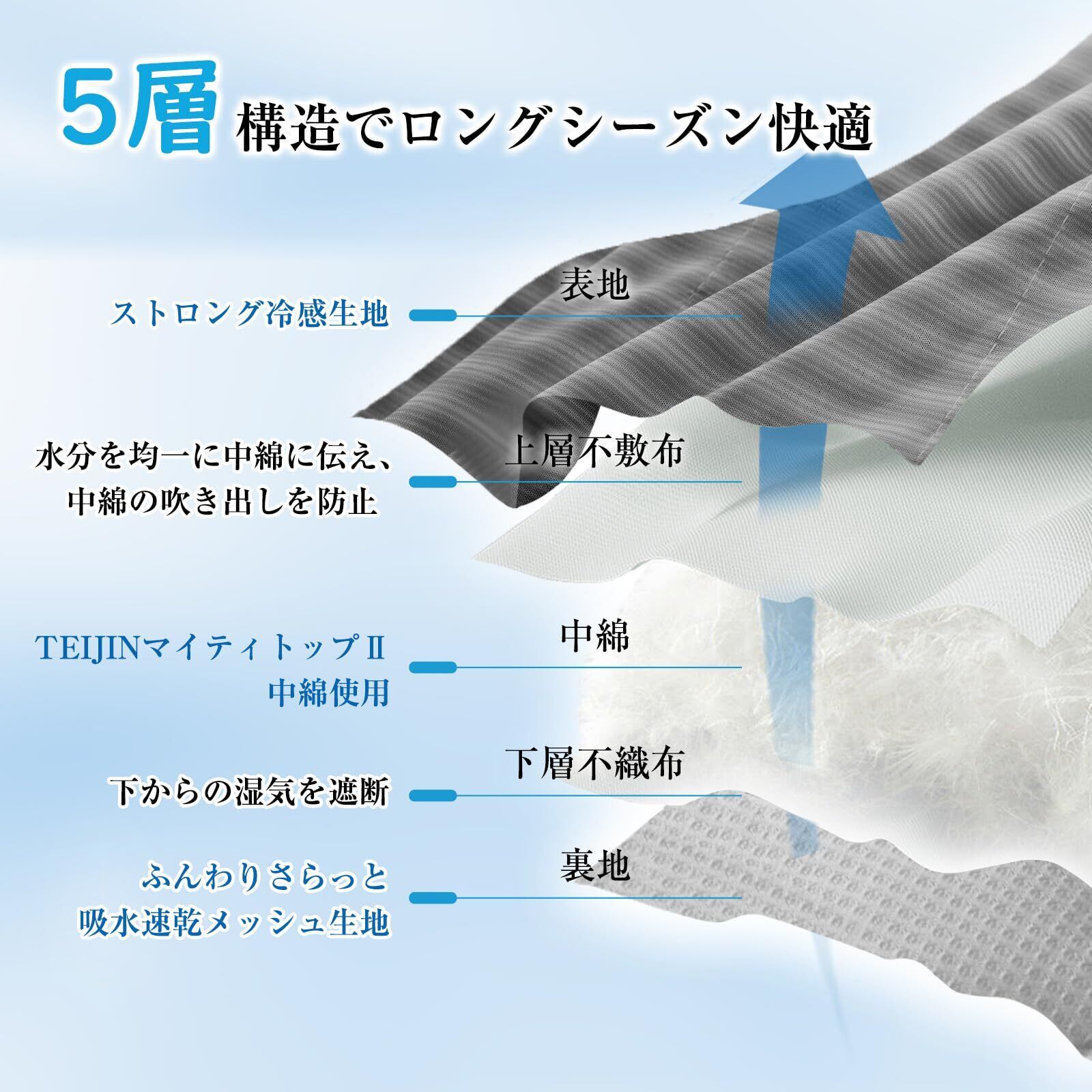 【中綿にTEIJINのマイティトップⅡを使用】詰め物にもこだわり、厚みのあるクッション性の高いパッドにお仕立て。冷たさだけでなく、寝心地にもこだわりたい方におススメです。なかわたに、防ダニ・抗菌防臭性に優れたTEIJIN(帝人)のマイティトップⅡ(R)ECOを使用。ニオイのもとになる菌の繁殖を抑え、頻繁に洗えなくても、毎日清潔に使える心強い味方です。