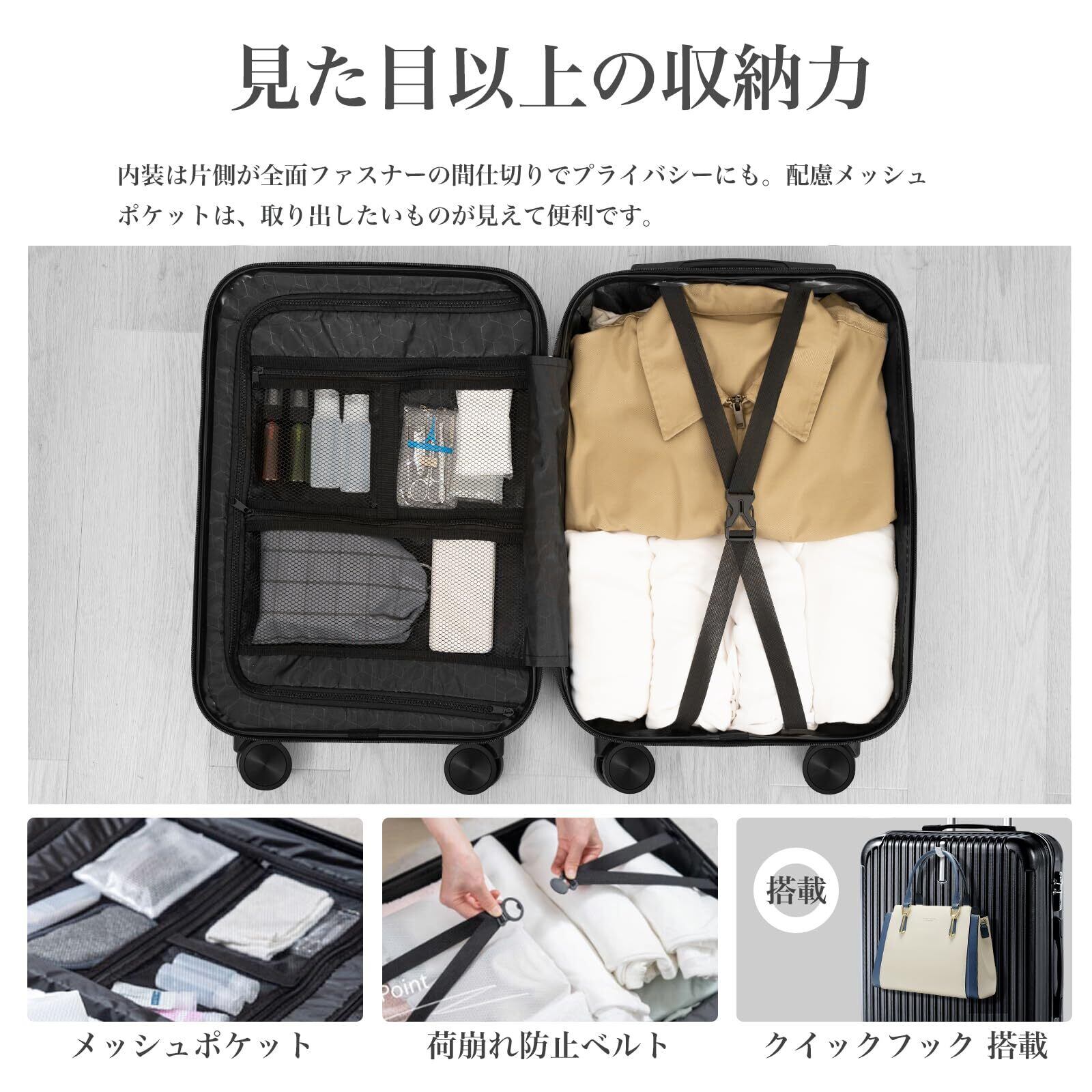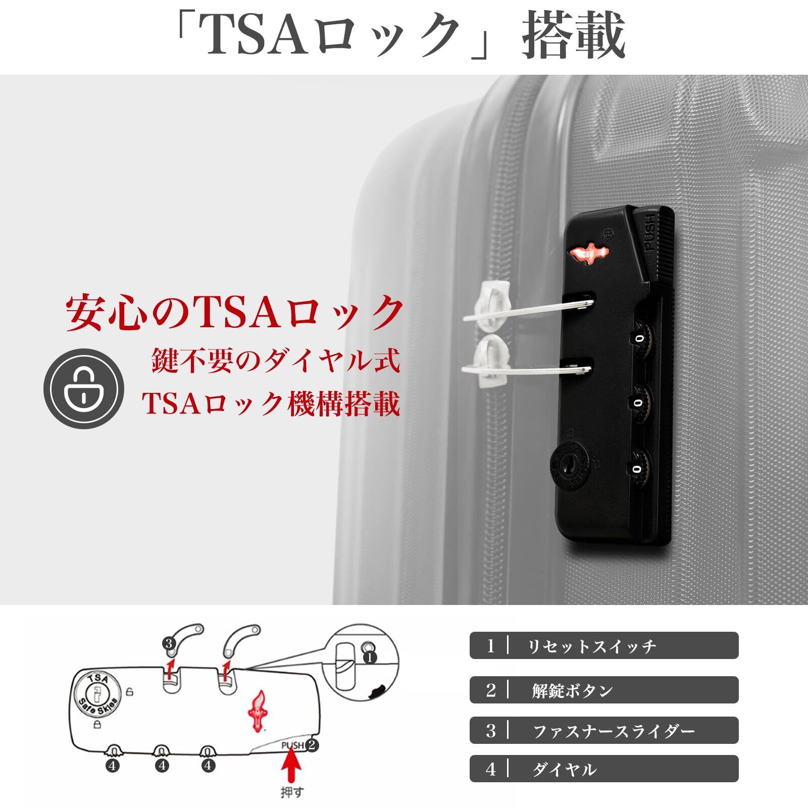 【TSAロック&操作簡単】キャリーバッグの鍵には世界基準のTSAロックを使用しています。外出がより安全です。隠しフックとサイドフック付き、モノ掛けで旅行が楽々、とっても便利で手荷物が増えたに対応します。