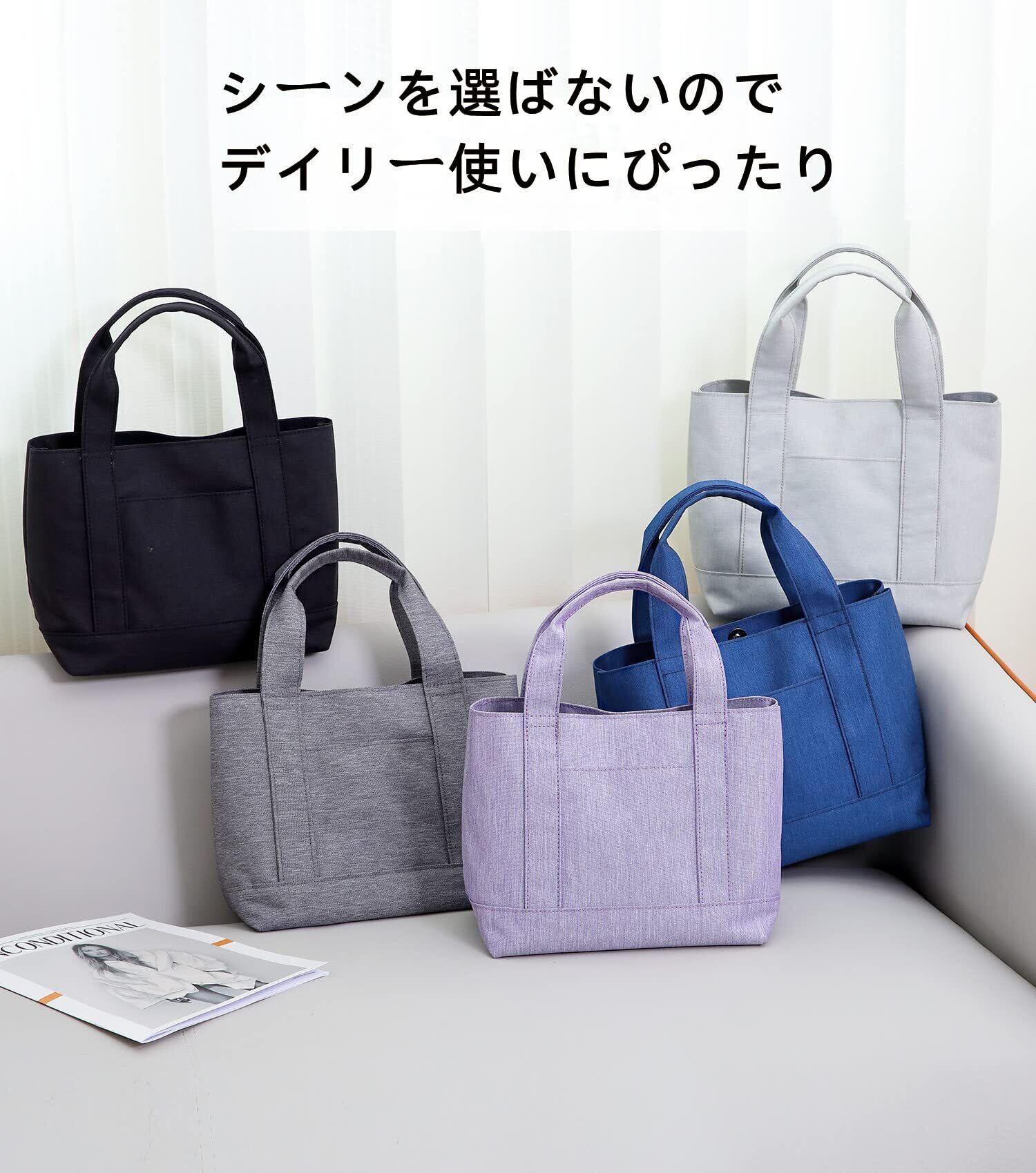 [ENLAN] トートバッグ ミニトート 軽量 小さめ ランチバッグ おしゃれ ハンドバッグ レディース 仕切り 散歩 買い物 通勤 メンズ 男女兼用 自立 ミニバッグ