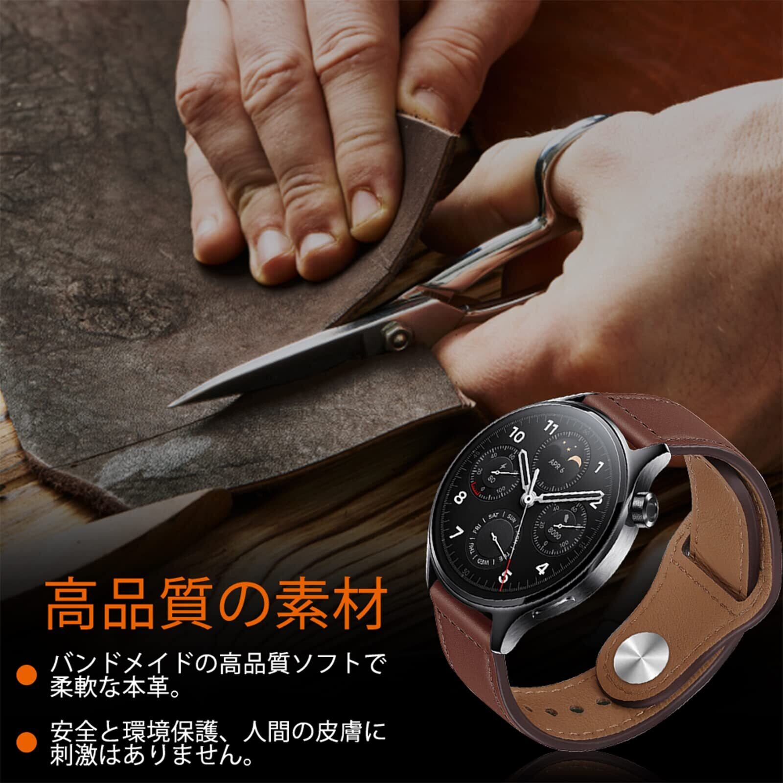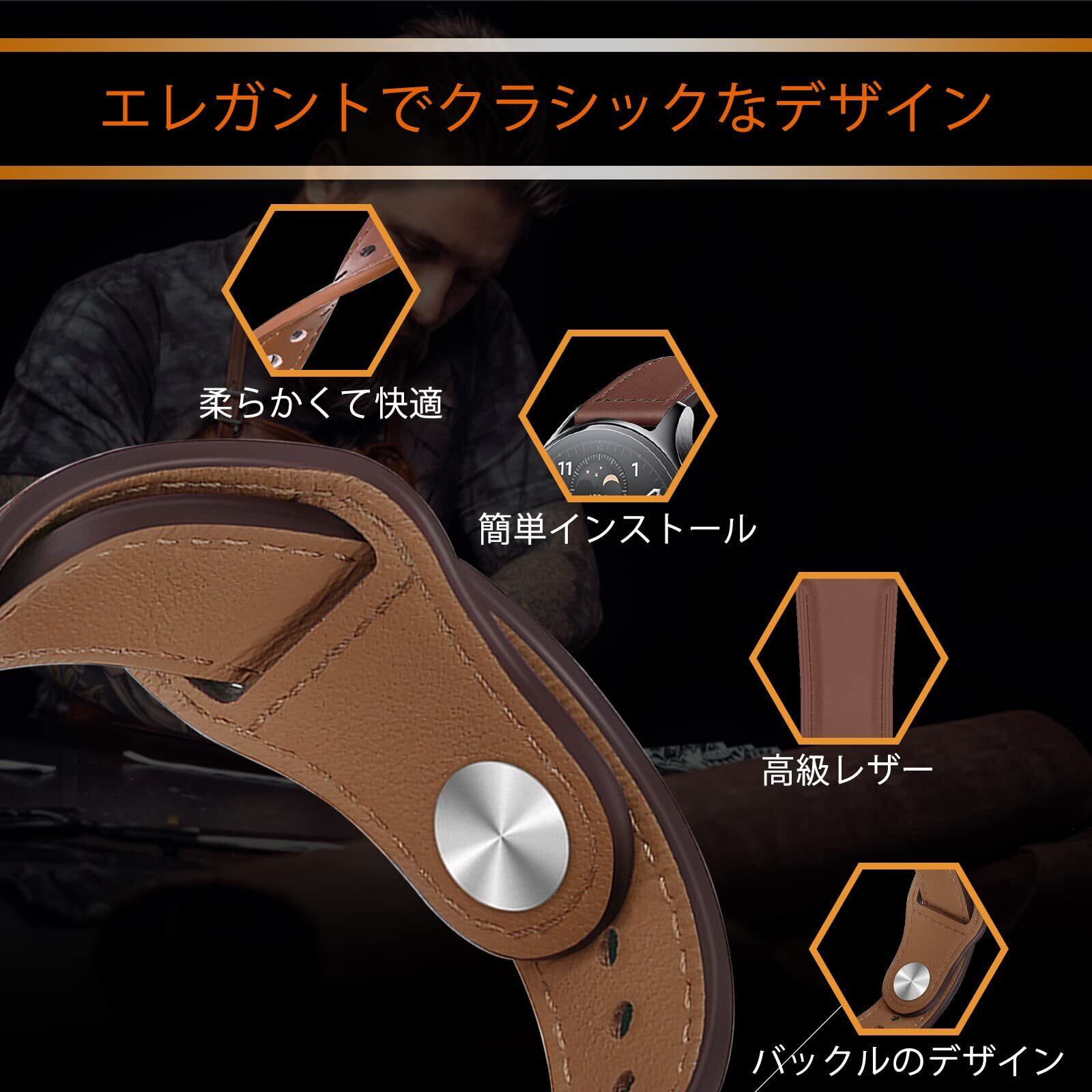 22mm レザーバンド Xiaomi Redmi Watch 5 Active/Redmi Watch 5 Lite/Watch 2/Watch S3/Watch S1 Pro/Watch S2 対応 本革バンド 交換ベルト 腕時計バンド ビジネス風 柔軟 男女通用 ストラップ Garmin Venu 3/Forerunner 265/255 用 時計バンド (ブラウン)