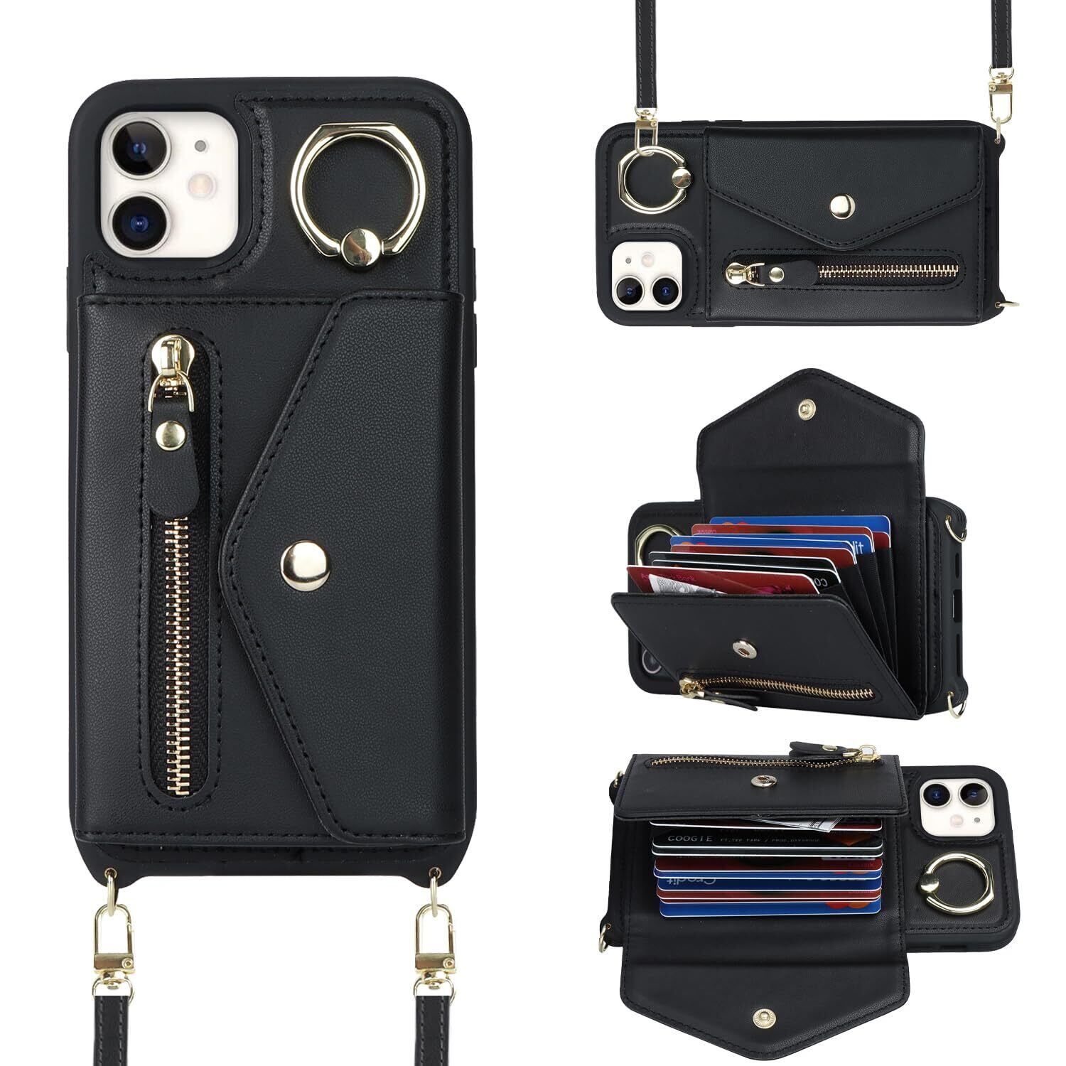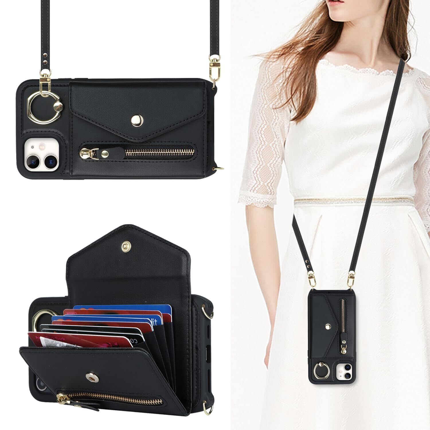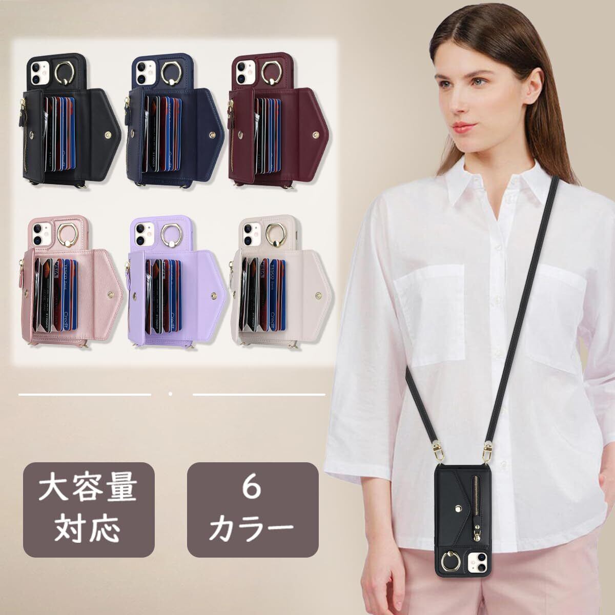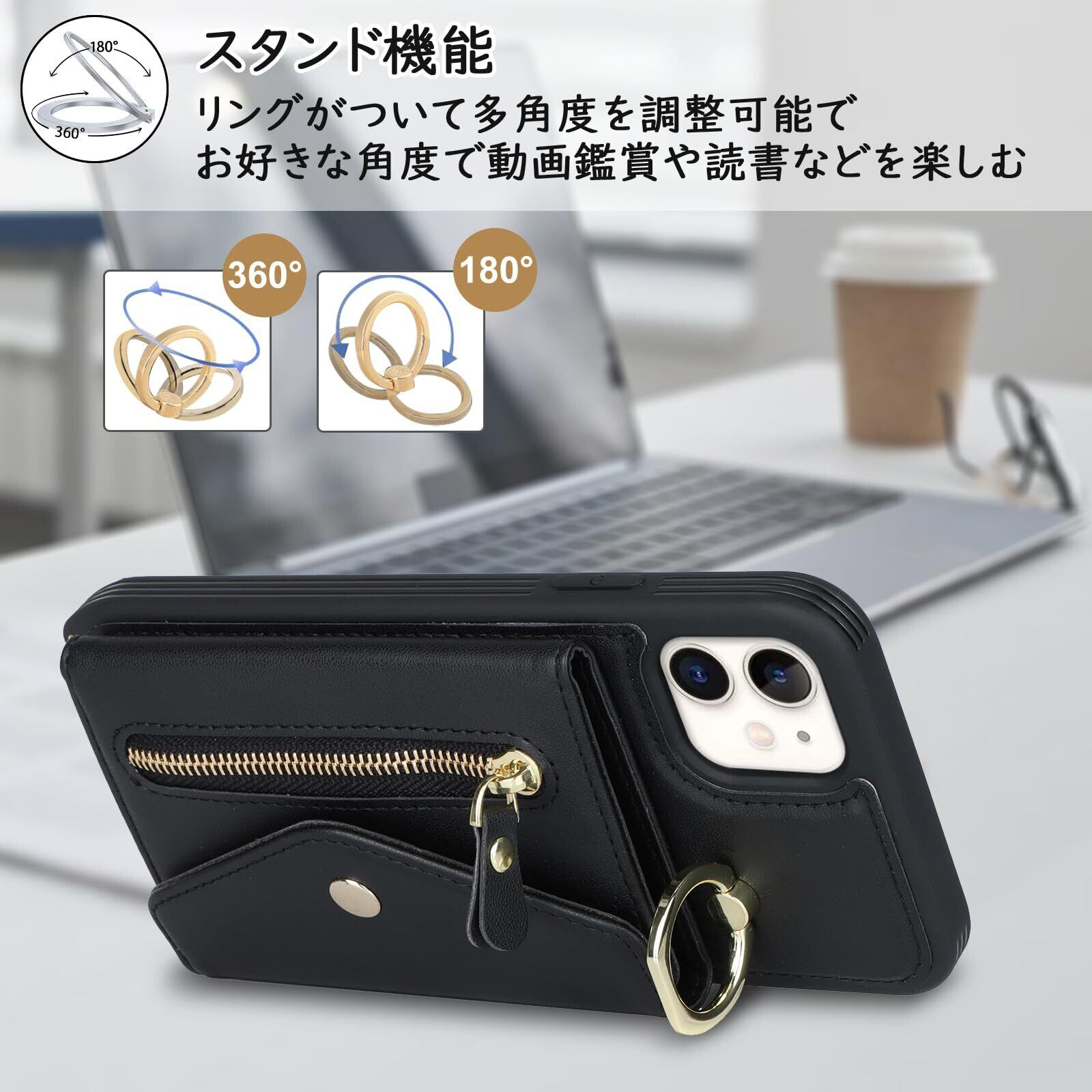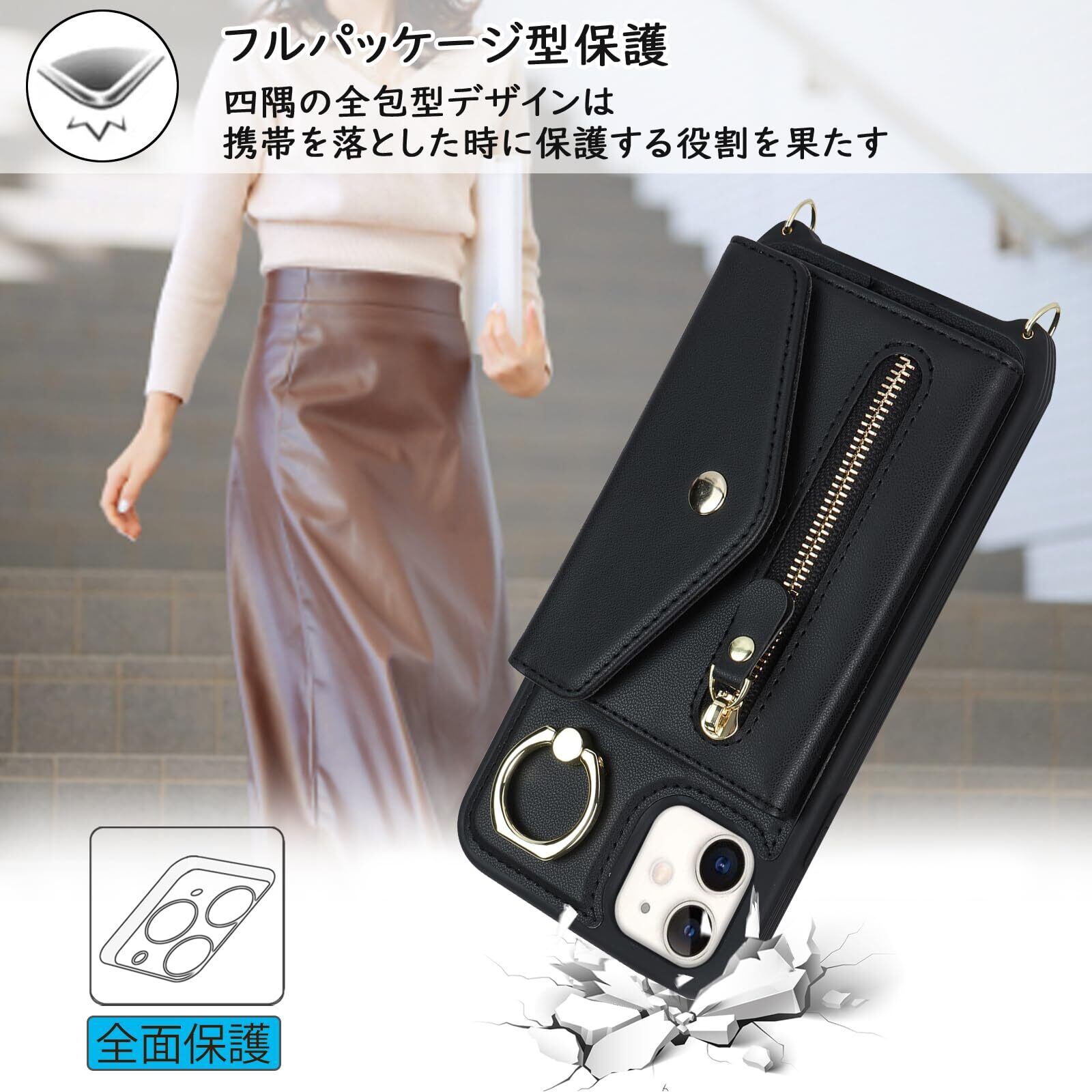 【Hamany】 iphone12 ケース ショルダー iphone12pro ケース オシャレ スマホケース iphone 12 カバー いphone12 ケース カード収納 大容量 リング付き スタンド機能 耐衝撃 全面保護 iphone12pro ケース ショルダー 肩掛け 斜めかけ カバー -Hamany-ブラック