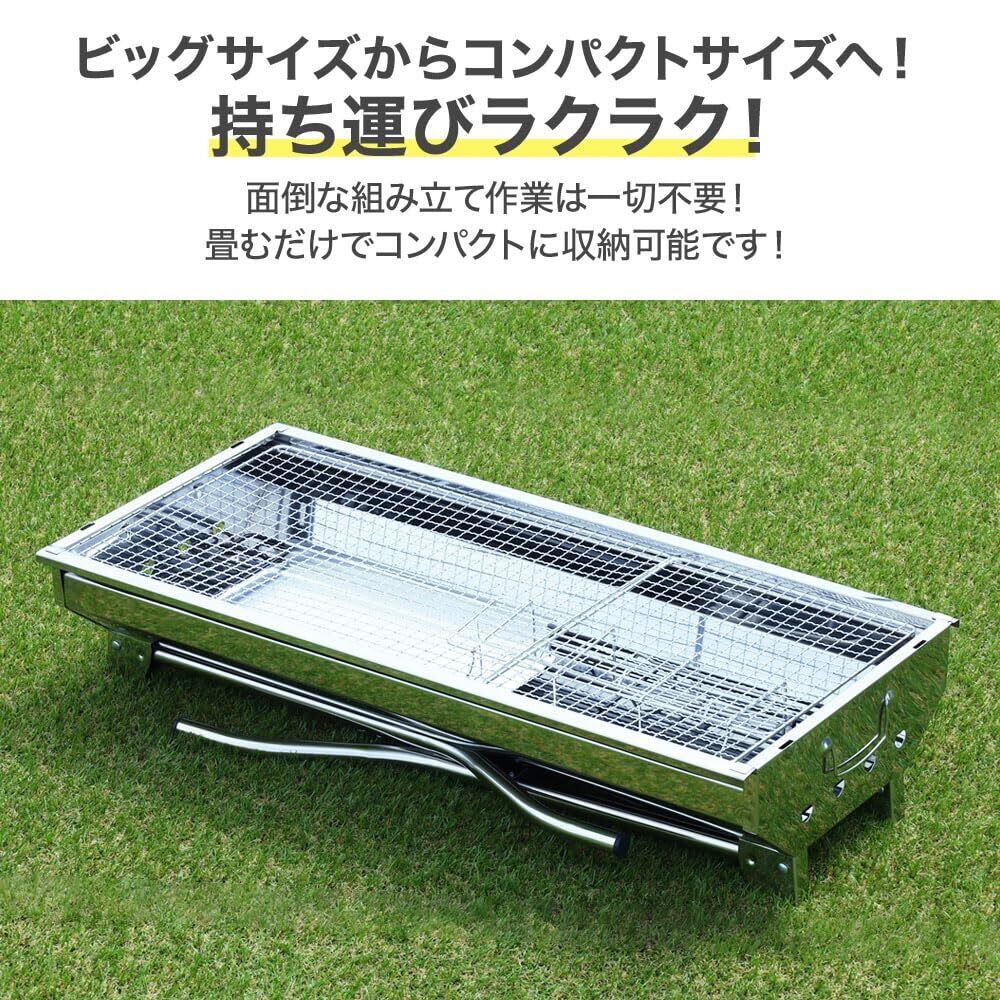 アウトドア・キャンプで家族・大人数でもしっかり楽しめるビッグサイズのバーベキューコンロです。大型ながら折りたたみ式なのでコンパクトに収納ができ、軽量で持ち運びもとても便利!