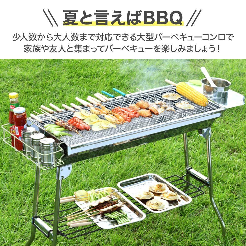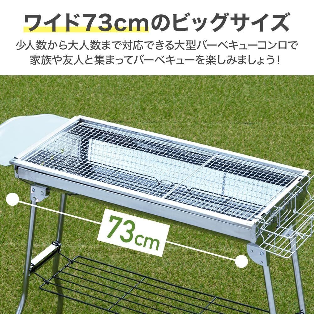 SeatheStars アウトドア コンロ バーベキュー 折りたたみ 大型 軽量 組立不要 ステンレス 焼き網幅73cm 大人数 持ち運び 焼き網2枚付属 調味料ラック付き