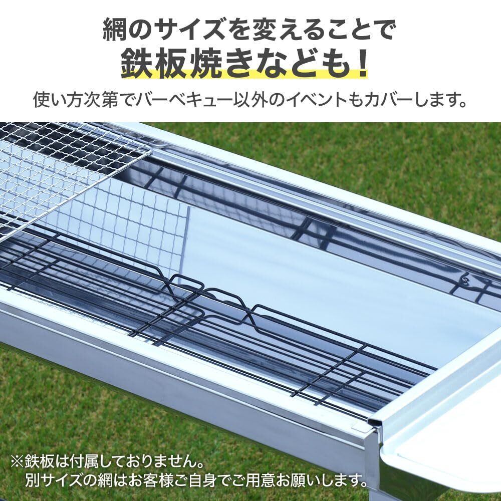 【商品詳細】本体サイズ (約)W95.5×D33.5×H70cm(組立時) 、重量:(約)4.8kg 、材質:本体/ステンレス鋼製、焼き網/鉄クロムメッキ、適合人数:5~15人