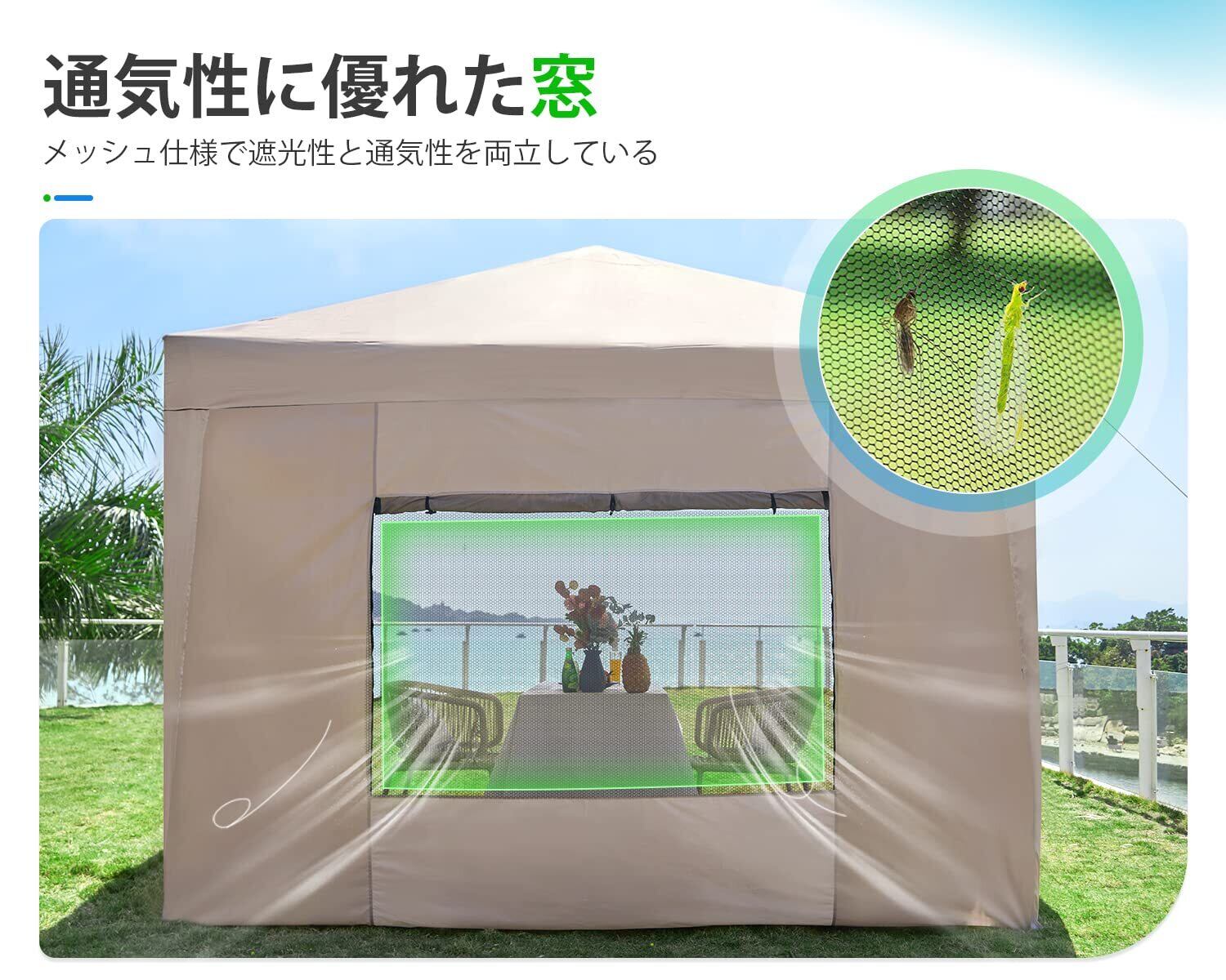 ADVANCE OUTDOOR ワンタッチ タープテント 3段階調節 3m/2.5m/2m UVカット 耐水 スチール キャンプ アウトドア 耐水専用横幕/サイドシート4枚付属 テント キャンプ用品 ワンタッチテント タープ(ベージュ,3m)