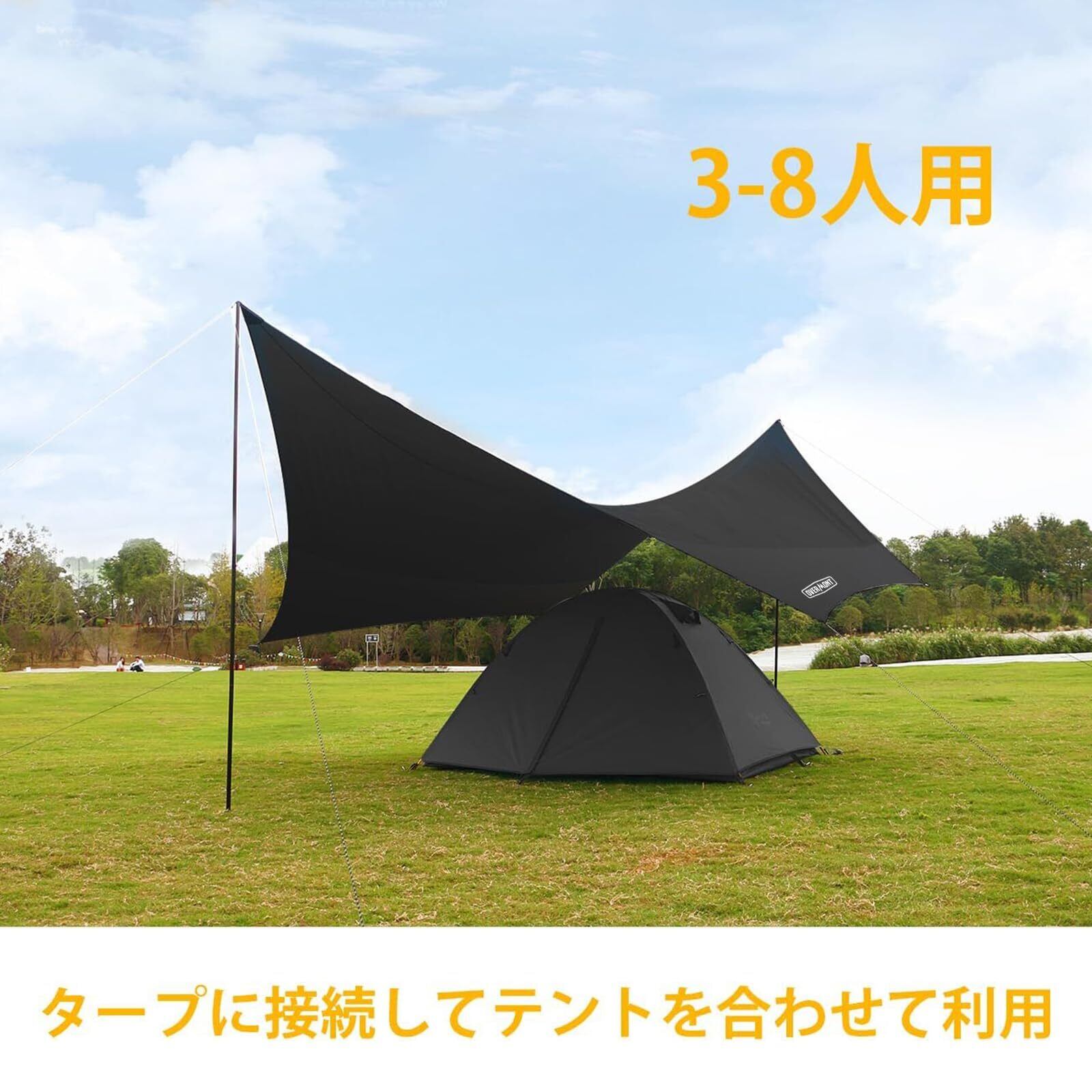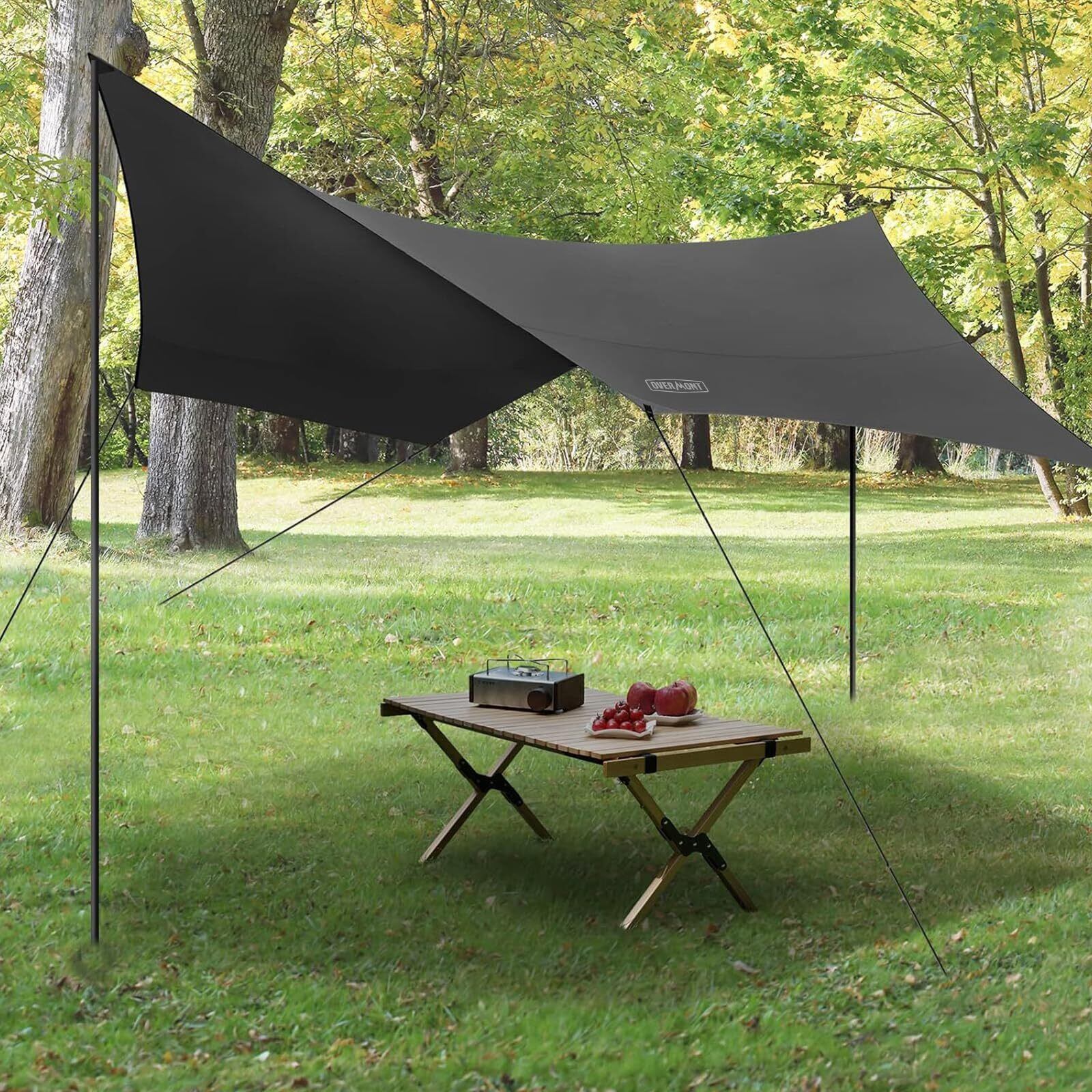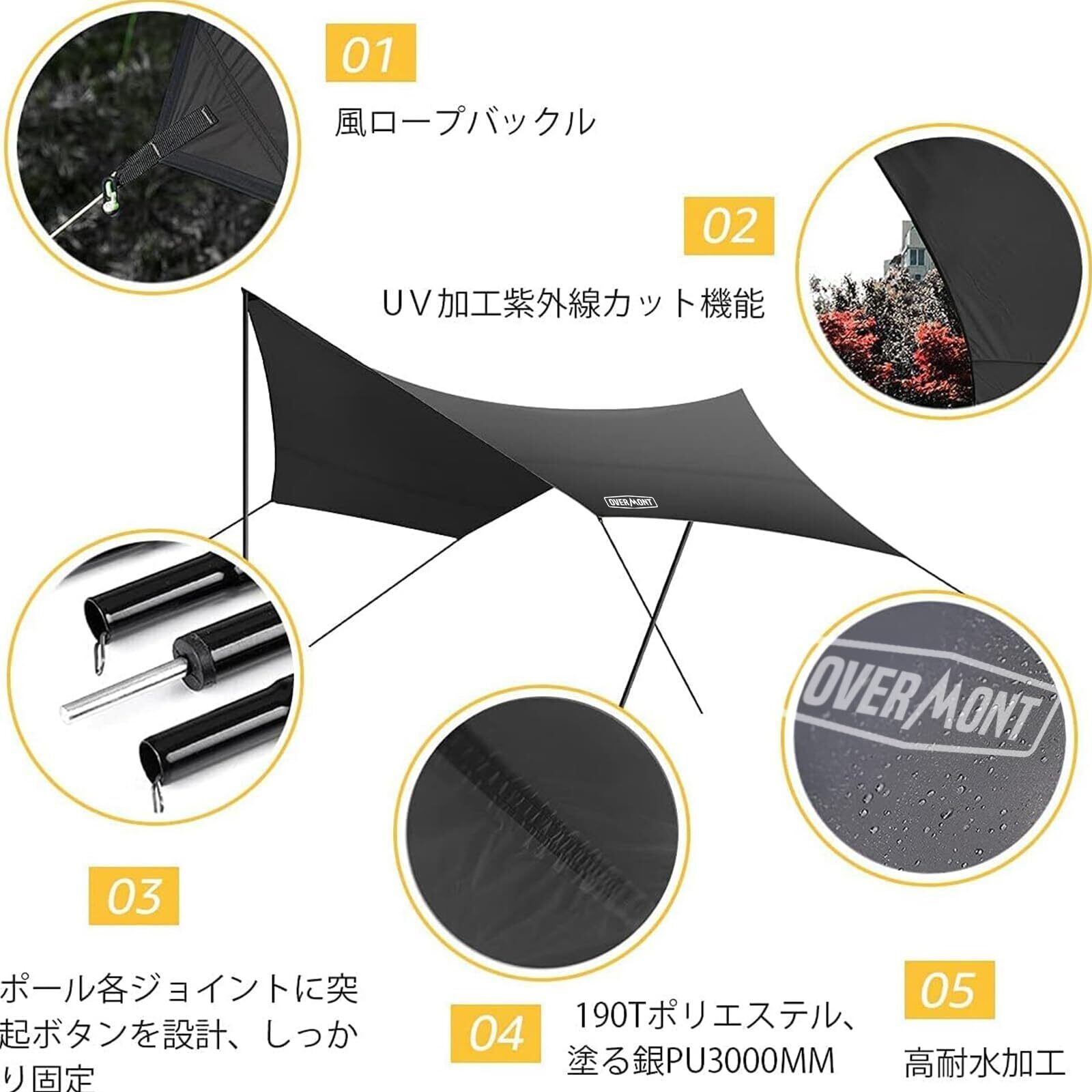 Overmont 防水タープ [5mx5m ポール付き 夜光ペグ 3-8人用] ヘキサタープ テント 天幕 シェード アウトドア 大型 難燃 焚き火可 テントとの取り組み可能 UV加工済 遮熱 遮光 キャンプ 収納ケース付