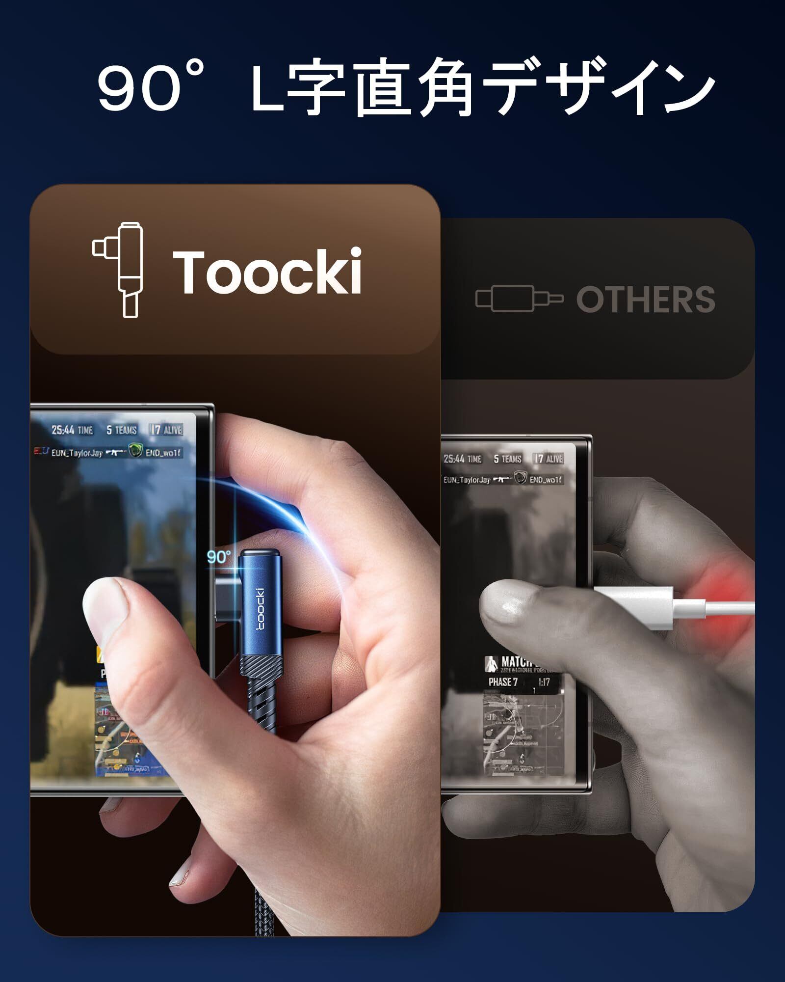 【革新的なL字コネクター】従来の「I字型」と異なり、90度に曲がった「L字型」type-c ケーブルとなっているので、充電しながらのゲーム機の操作やスタンド等に設置した際に邪魔になりにくく、狭い場所にも適用!