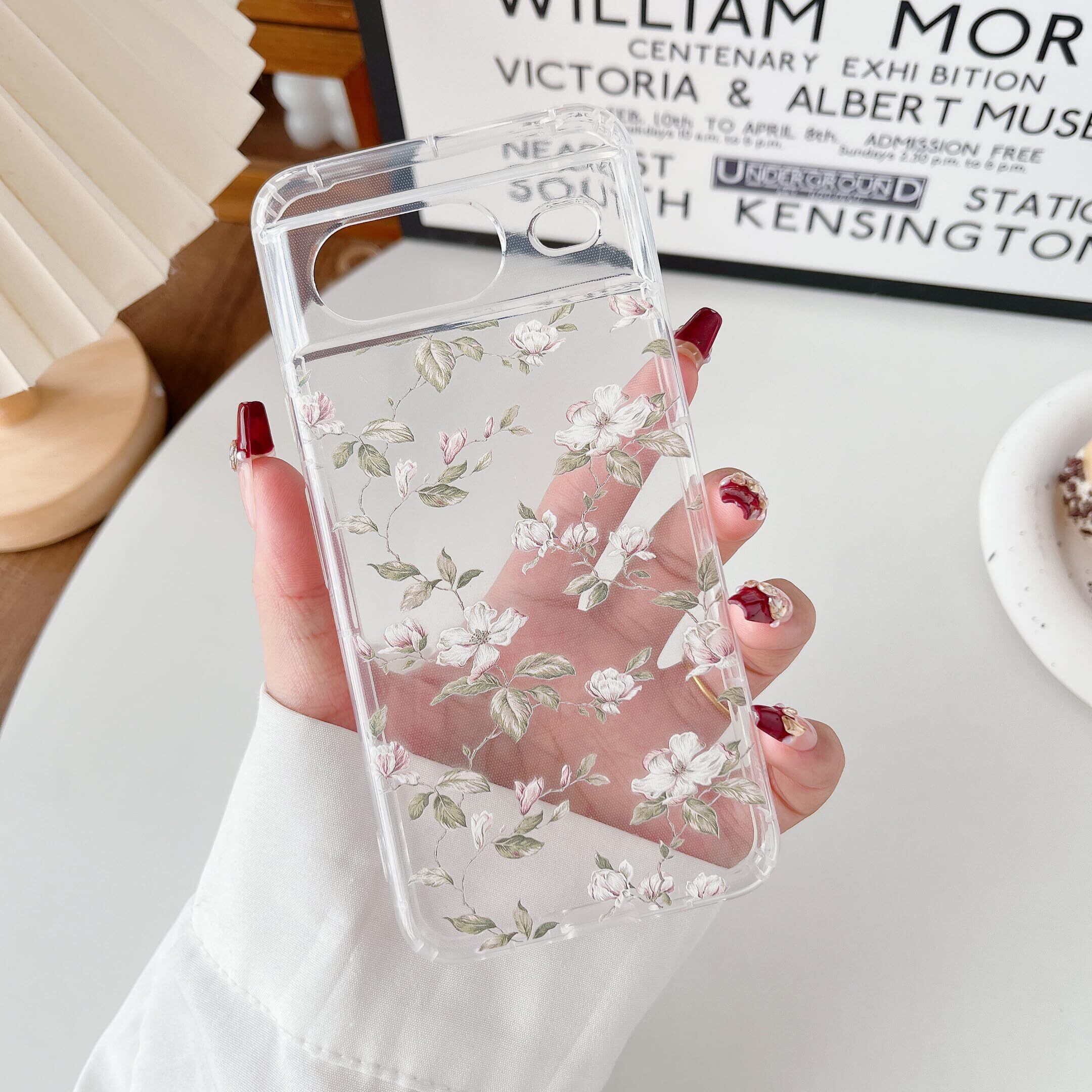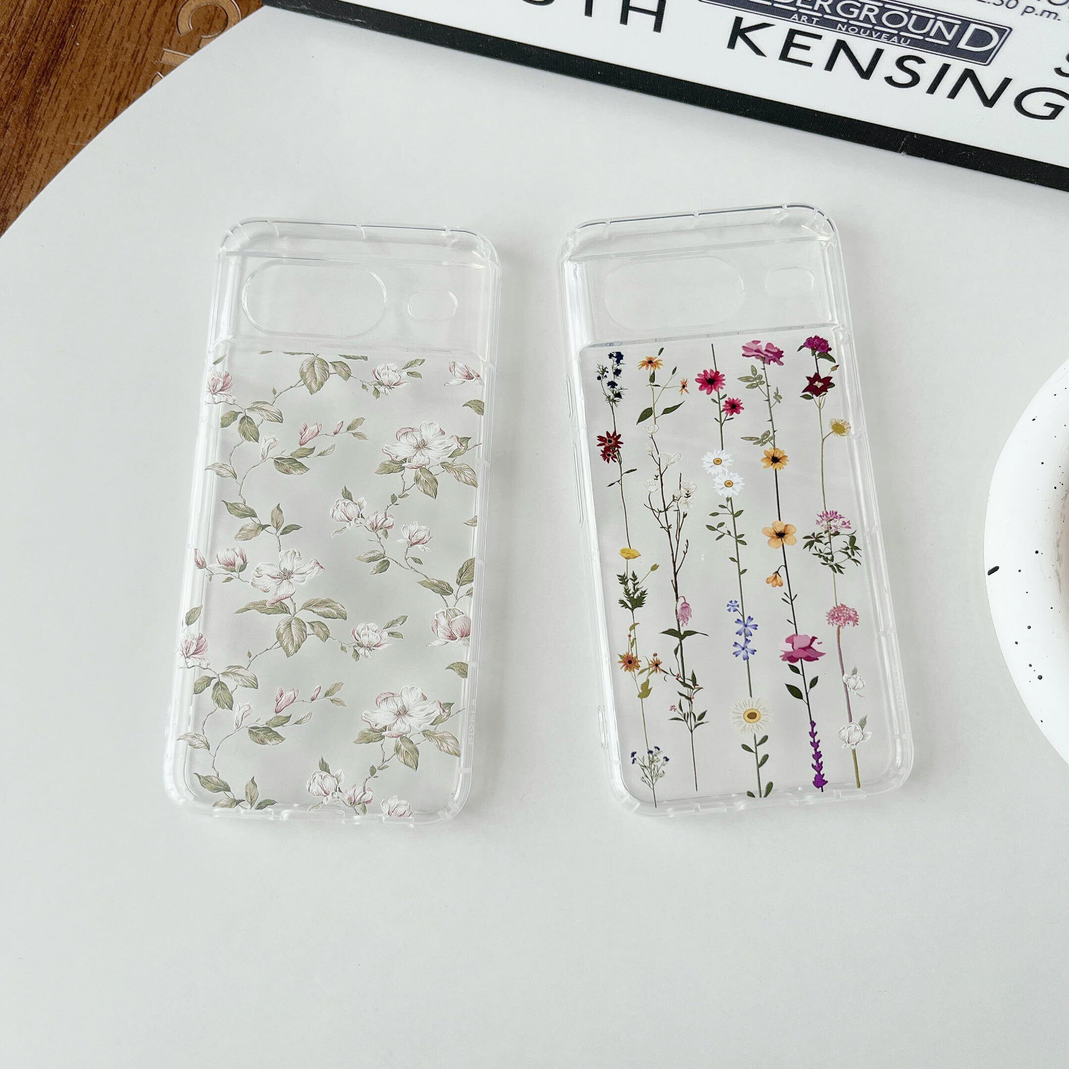 Google Pixel 8 用フラワーケース おしゃれ クリア ケース 花柄 スマートケース 韓国 かわいい 薄型 軽量 柔軟な ソフト TPU ケース グーグル ピクセル 8 ケース 人気 女子 耐衝撃 画面レンズ保護 Pixel 8 透明 携帯カバー (花と葉)