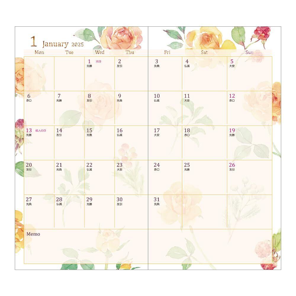 【付録】六曜、年間カレンダー、年間スケジュール、メモ、マイメモリーズ、パーソナルページ
