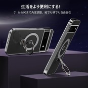 【スタンド機能】多機能スタンドとリング一体型の斬新なデザインです。隠しスタンドの設計で、省スペース性に優れ、収納するときは水平的に置けできて、持ち運びの邪魔になりません。縦置きでも横置きでも安定して支えられ。FaceTimeでも動画でも両手が完全に解放されます。また、安定したアルミ合金製の円形スタンドを採用しており、携帯性からもファッション性からも唯一無二の存在です。