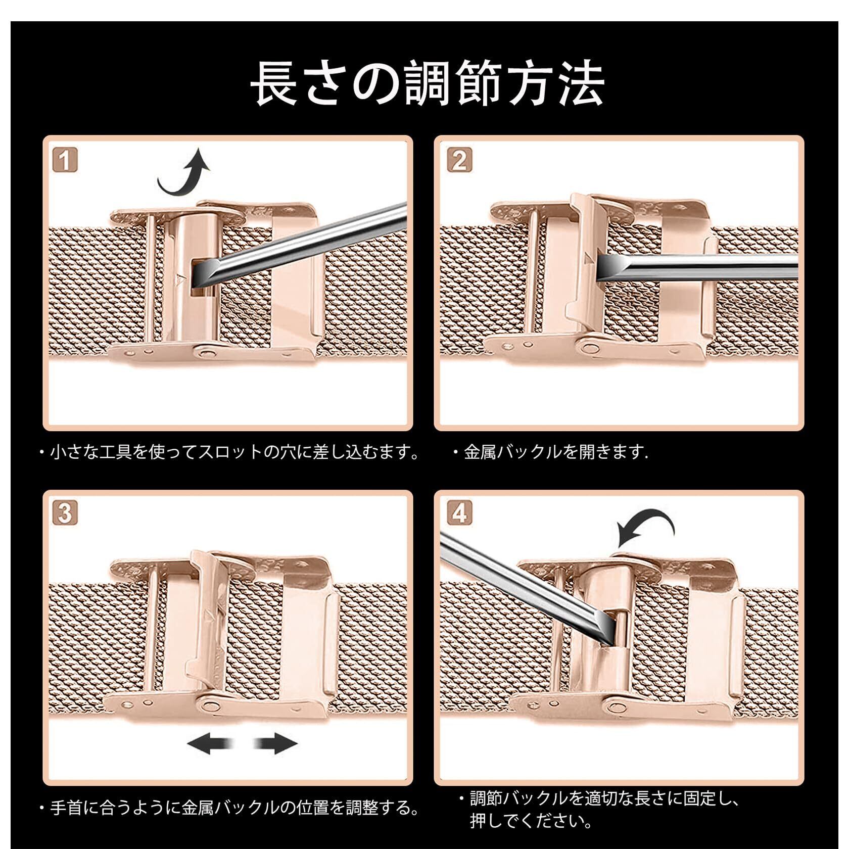 【優れた素材】ファッション性、高貴さ、耐久性、エレガンスを兼ね備えたプレミアムステンレススチールメッシュで作られています。通気性が良くなっるメッシュデザイン、皮膚の炎症を防ぎます。快適に着用できます。鋭いエッジがまったくなく、液体のように肌に触れます。