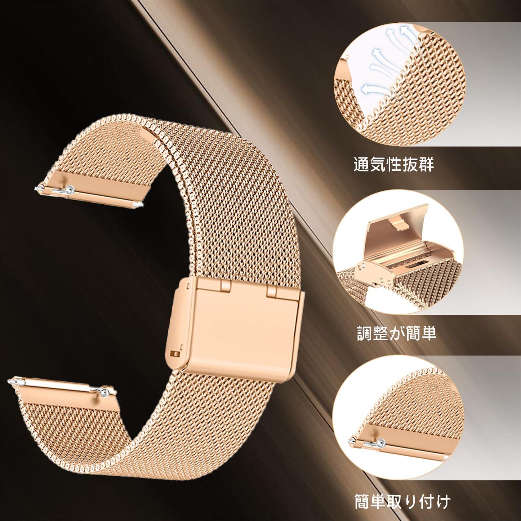 [Etsbaocy] 20mm 交換用バンド Garmin vívomove Trend/Garmin Venu Sq 2/Venu Sq 2 Music/Garmin Move Sport 対応 交換ベルト メッシュ織り テンレスバンド 替えバンド 金属ベルト Garmin Venu/Venu Sq/Venu Sq Music 用 バンド - ローズゴールド