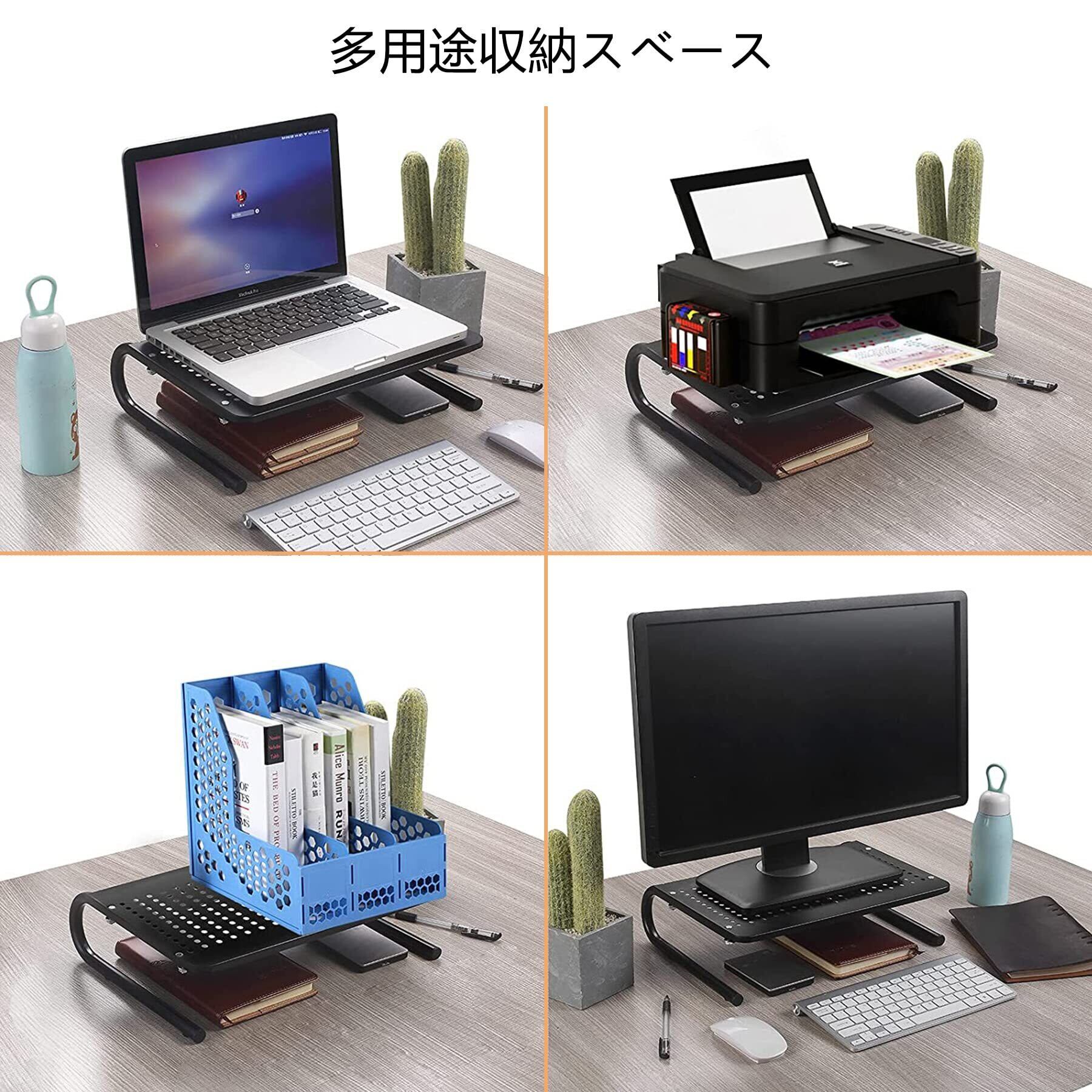 【丈夫で安定性抜群】頑丈なスチール製で、しっかり物を支えます。脚の下部にはゴムパッドがあるので、滑り止めることができて、傷を防止することもできます。20kgまでのノートパソコンとモニターを載せることができます。優れた安定性と絶妙な外観で、デスクに優雅さを加えることができます。
