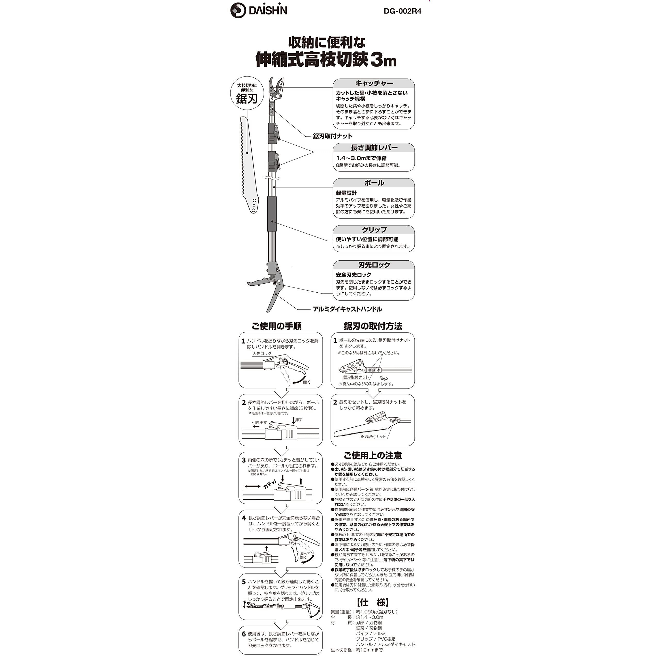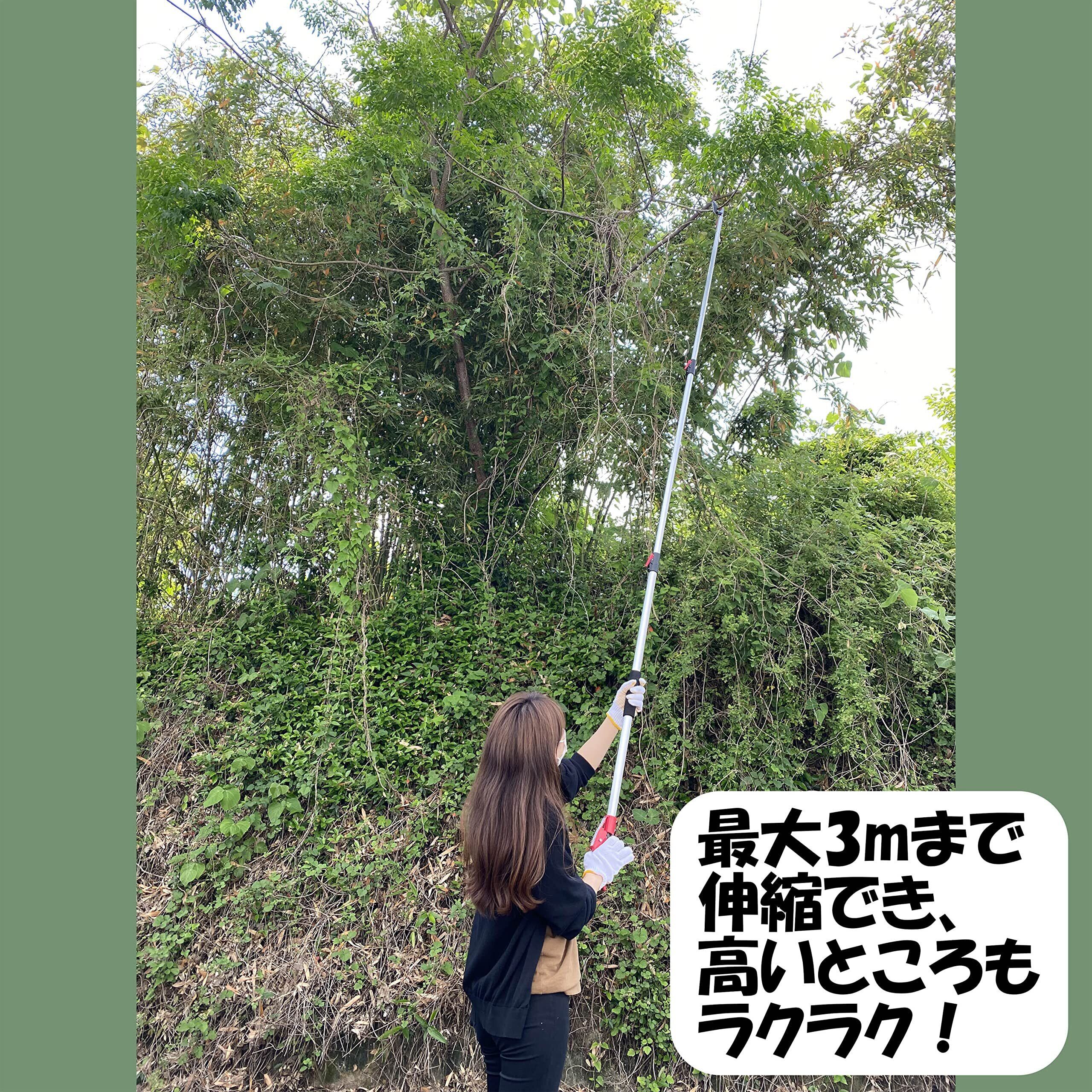 大進 収納 に便利な伸縮式 高枝切鋏 3m 高枝切り鋏 高枝切りはさみ 高枝切りバサミ のこぎり付き 鋸付き 太枝 5m まで剪定可能 軽量 コンパクト 伸縮 つかみ機能付き 剪定鋏 強力 高枝 枝きりばさみ 剪定 高枝切り 剪定鋏 ガーデニング用品 枝切 ハサミ 園芸用品 庭園 女性用 軽い