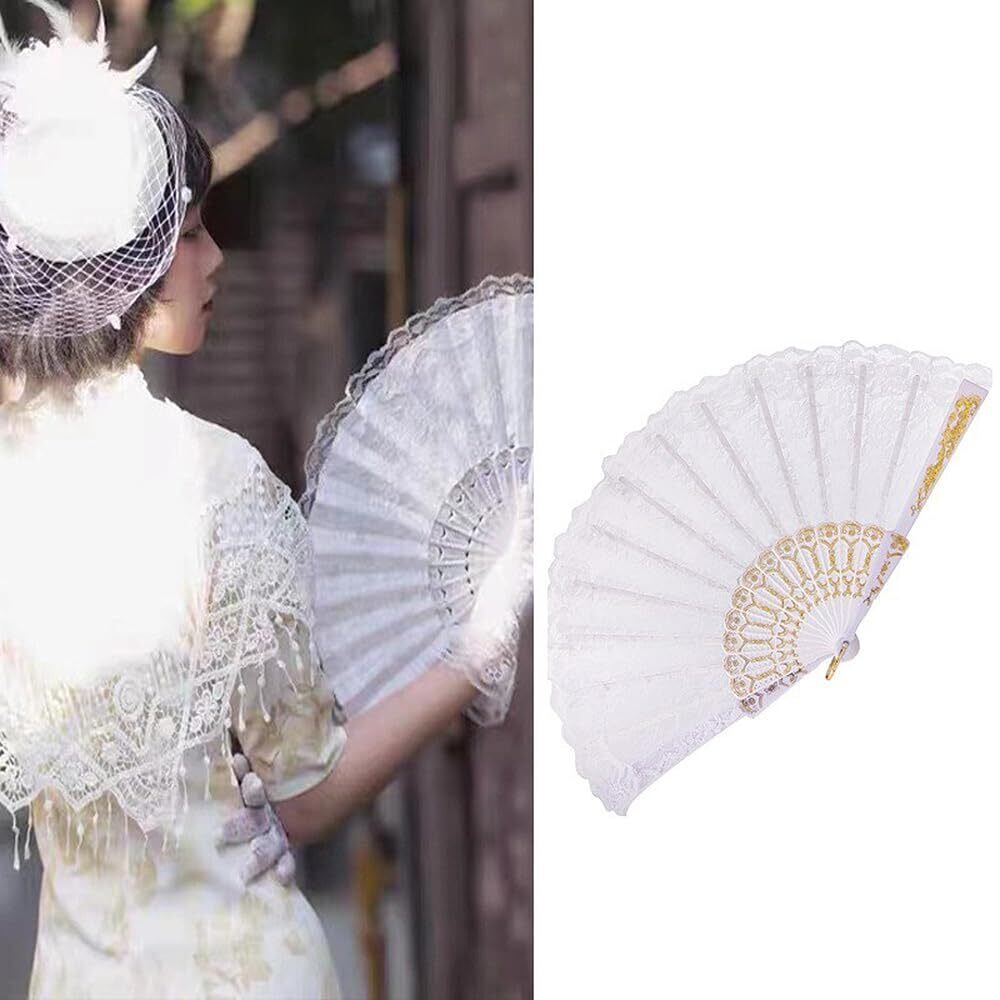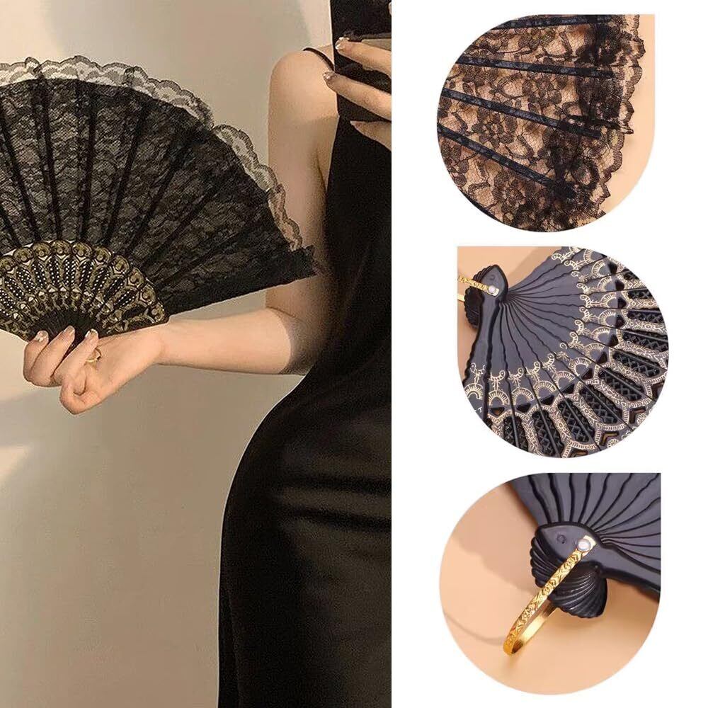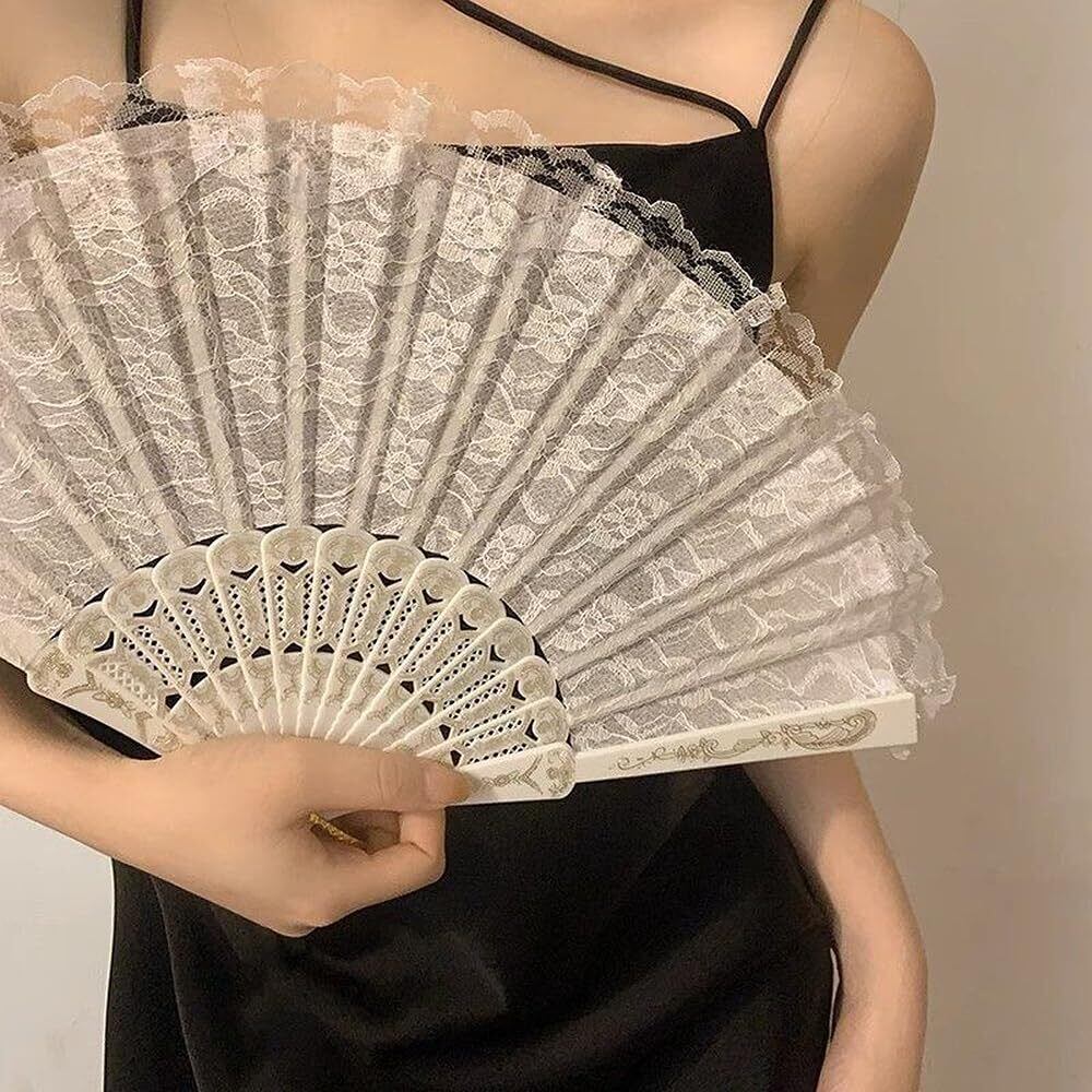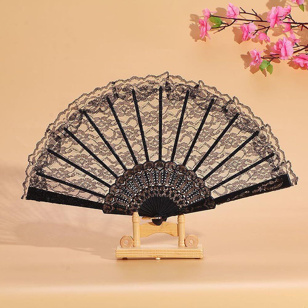 レース扇子 フラワーファン 折りたたみ式 2個 ダンス 踊り スペイン ドン/キホーテやスペインの踊り 装飾の扇子 ダンスパフォーマンス用 練習用 バレエ バレエ用品