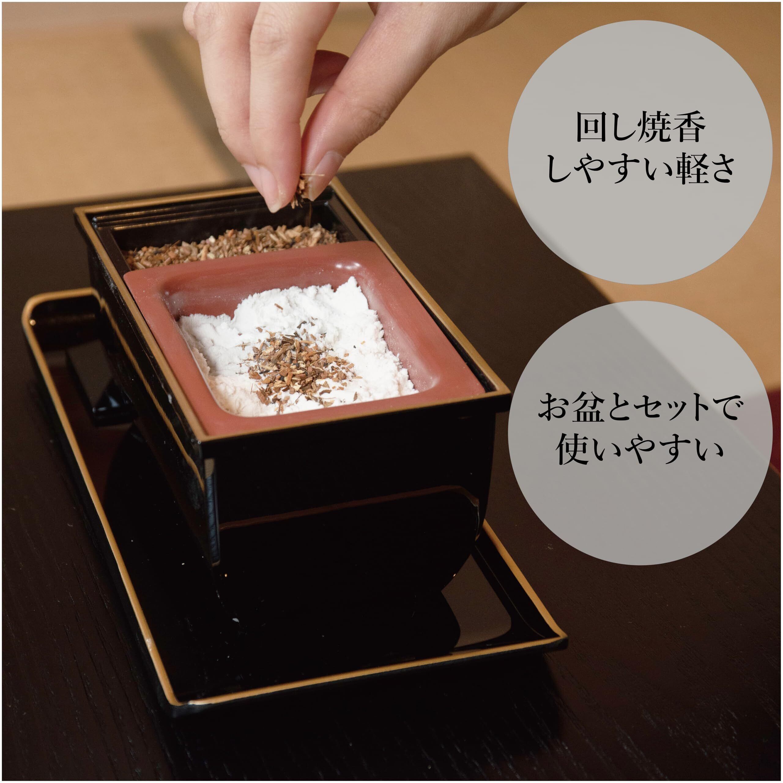 【法事・回忌・葬儀の際に】日常のお参りにはお線香を使用しますが、通夜、葬儀、法要などでは焼香も行います。お焼香や廻し香炉として、仏前の焼香にご使用いただけます。