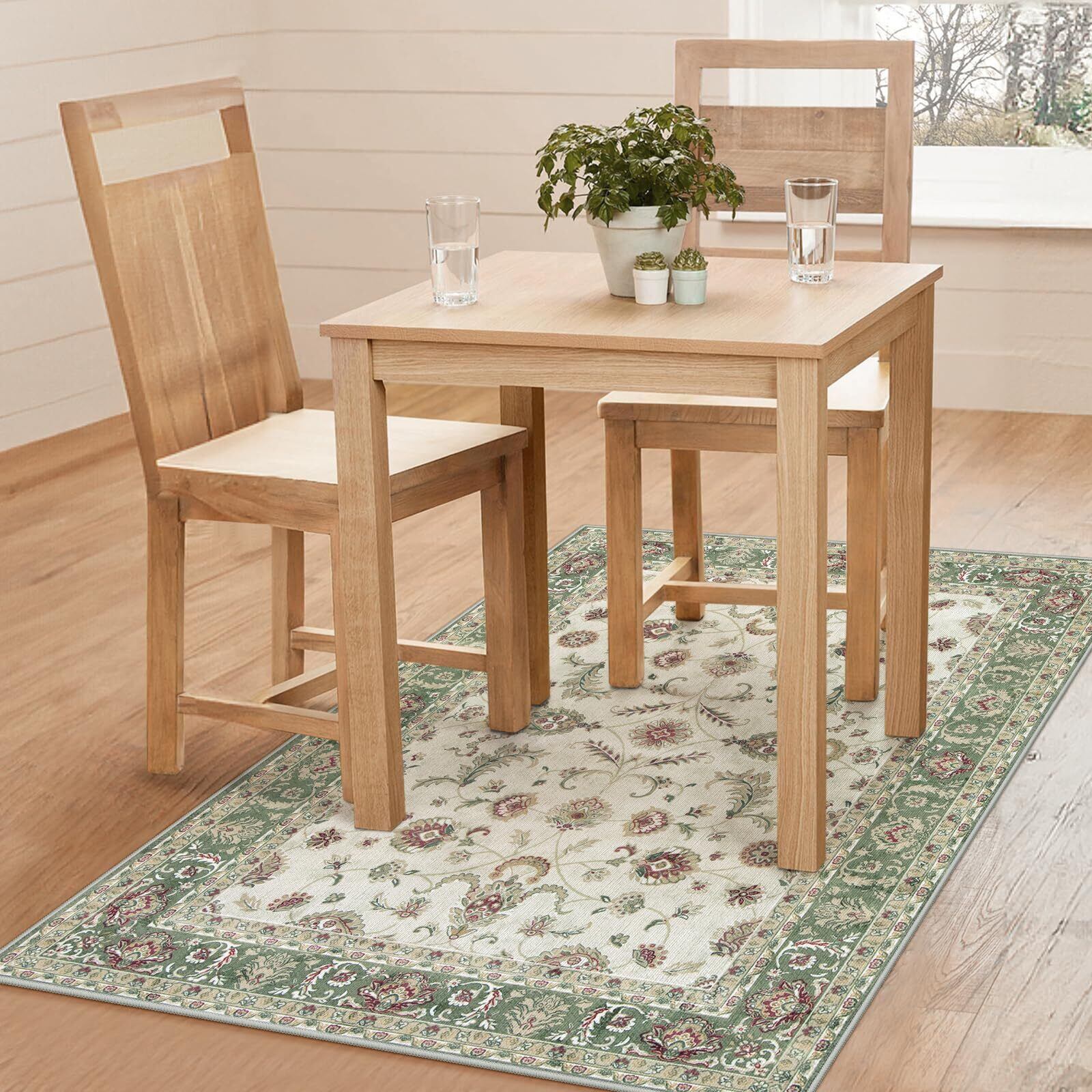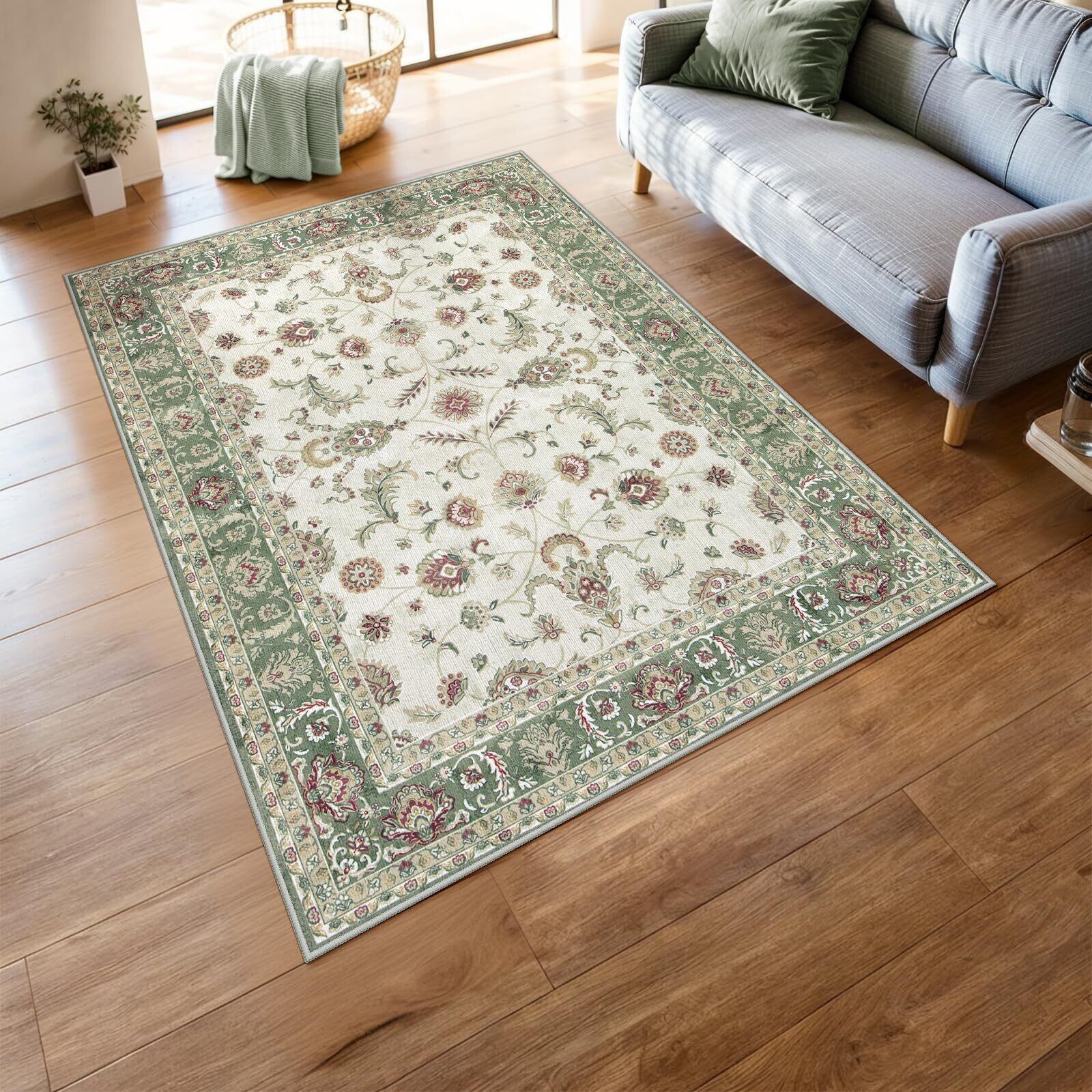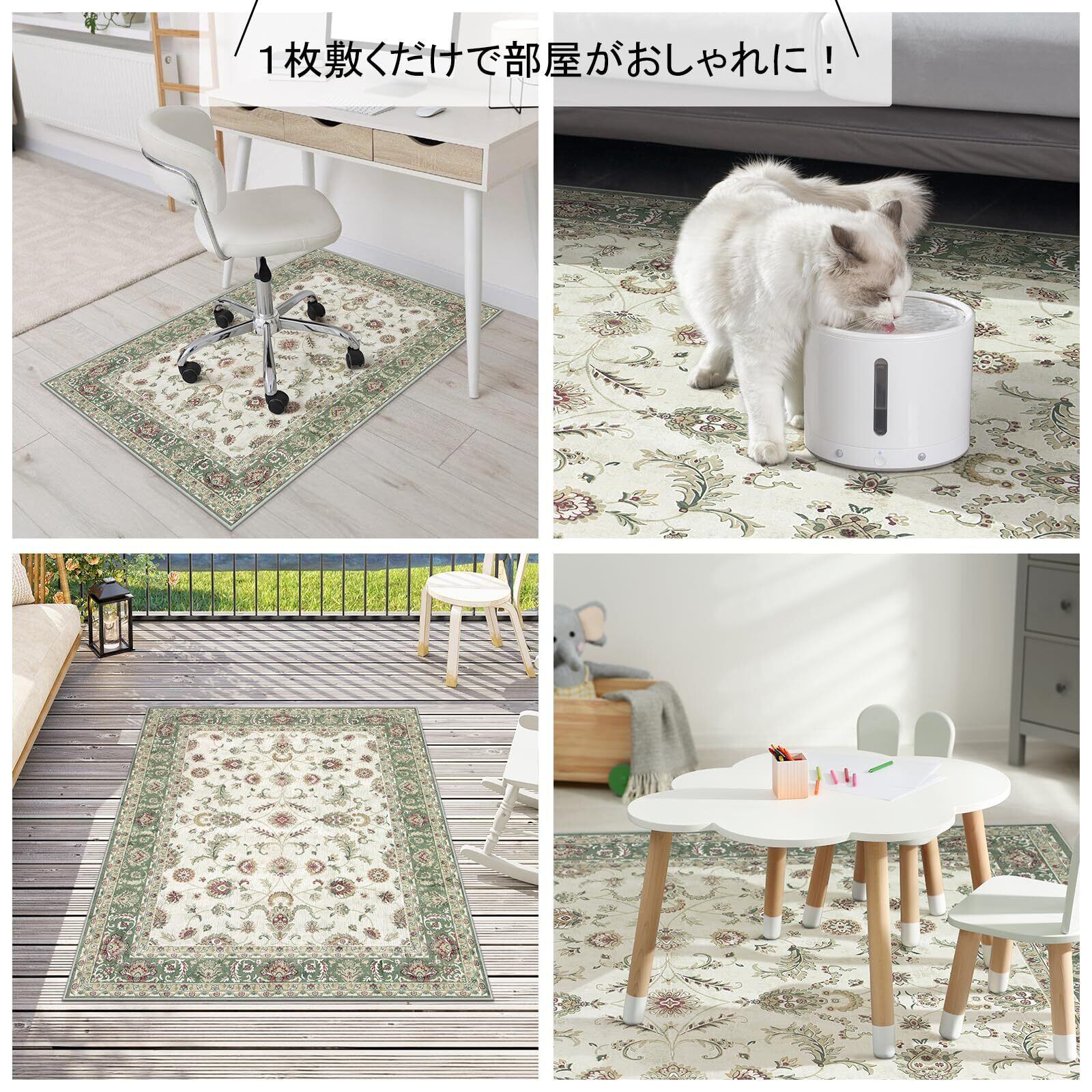 HAOCOO ラグ カーペット 1畳 洗える 120х160cm ラグマット オールシーズン適用 ペルシャ風 じゅうたん 滑り止め ホットカーペット対応 防音 寝室 ラグ 耐磨耗性 軽量 花柄 グリーン