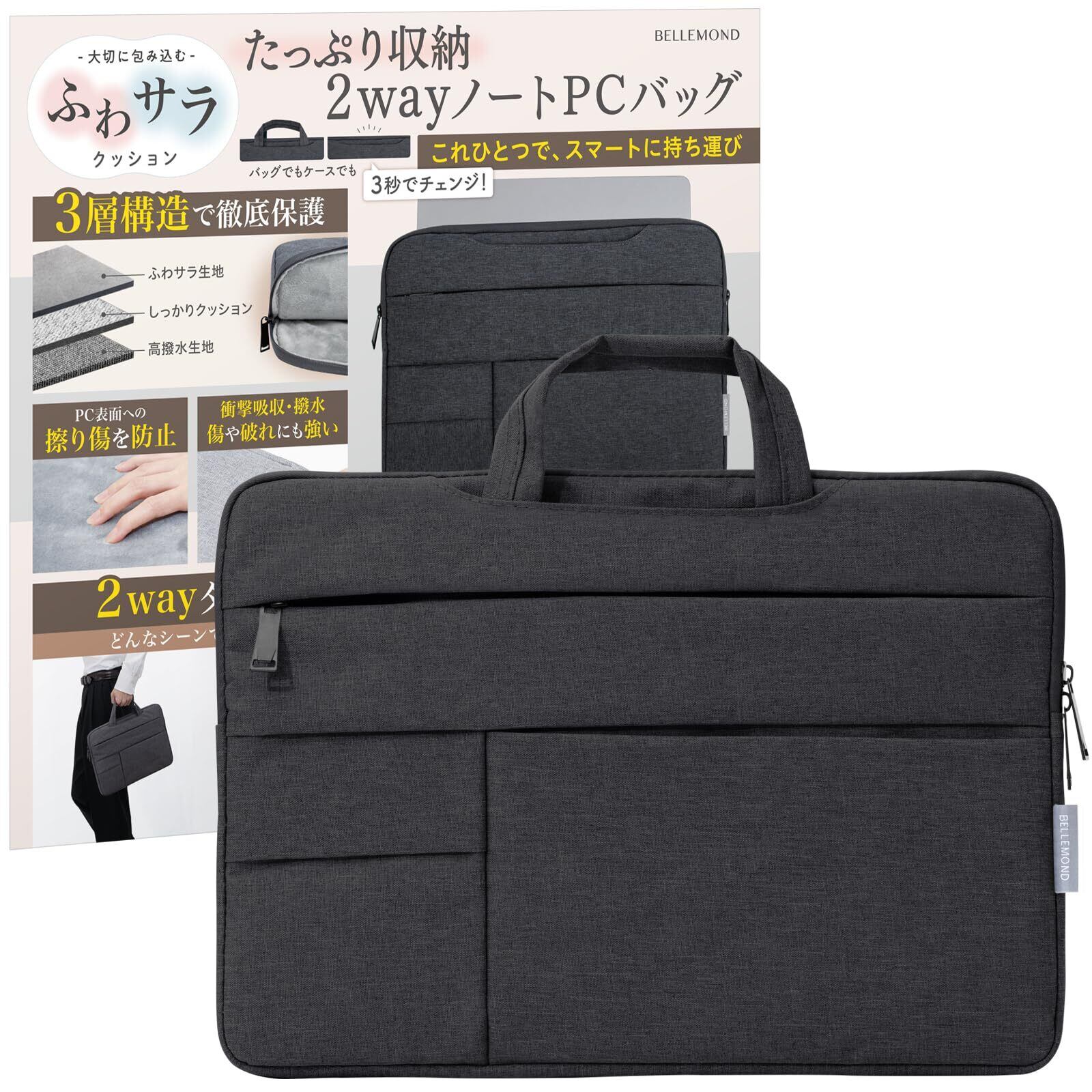 ベルモンド ノートパソコンケース 手提げ おしゃれ PCバッグ カバン インナーケース MacBook Pro Air パソコンバッグ 軽量 撥水 14 インチ PCCASE14 G158 BK