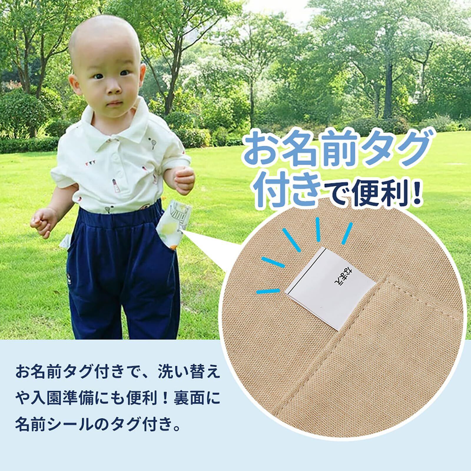 [名前付き]名前が書ける便利なタブ付き、幼稚園や保育園などで自分のタオルを見つけやすく、なくす心配もありません。