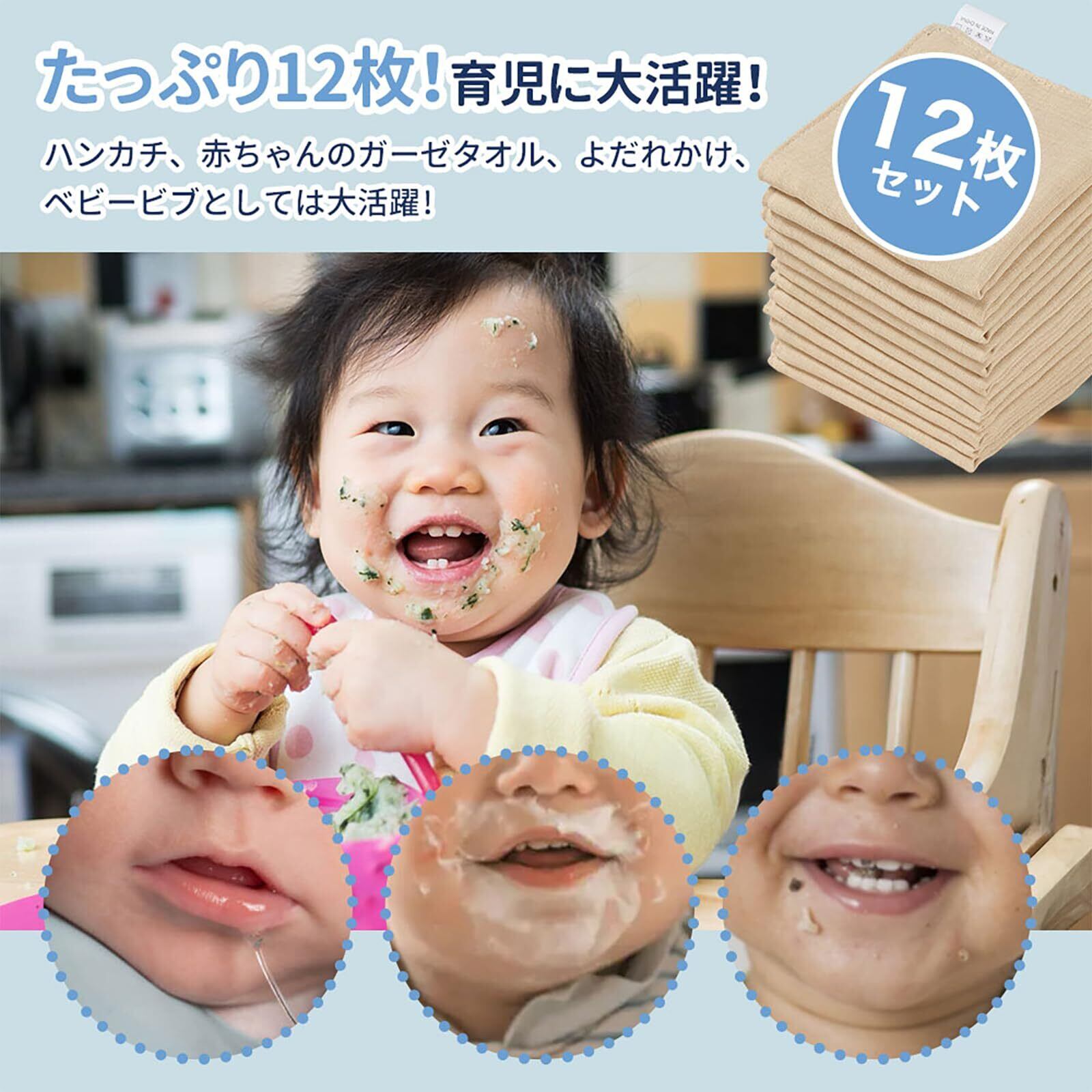[HOOMCOOM] ガーゼハンカチ ベビー 4層 ガーゼタオル 赤ちゃん 名前を書ける 保育園用 男の子 女の子 綿100% 柔らかい 速乾 20x20cm 12枚セット
