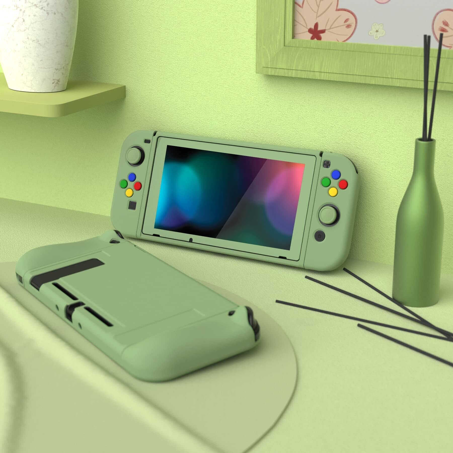 ZealProtect Nintendo Switchに対応用ソフト保護シェル、switchに対応用フレキシ保護カバー、スクリーン保護フィルム&サムグリップキャップ&ABXY方向ボタンキャップ付き-純色系【抹茶グリーン】