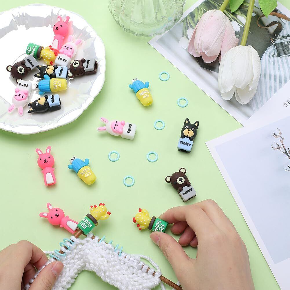 1箱74個 動物 マーカー 編み針 キャップ 可愛い ウサギ 棒針キャップ サボテン 円形編み 犬 パイナップル ステッチ クマ メーカー リング 編み針ストッパー かわいい 編み目メーカー 編み物ツール 収納ケース付き 携帯便利 アクセサリー 基礎パーツ ジュエリー作り レディース デコキット クラフト手芸 手作りハンドメイド キット DIY飾り物
