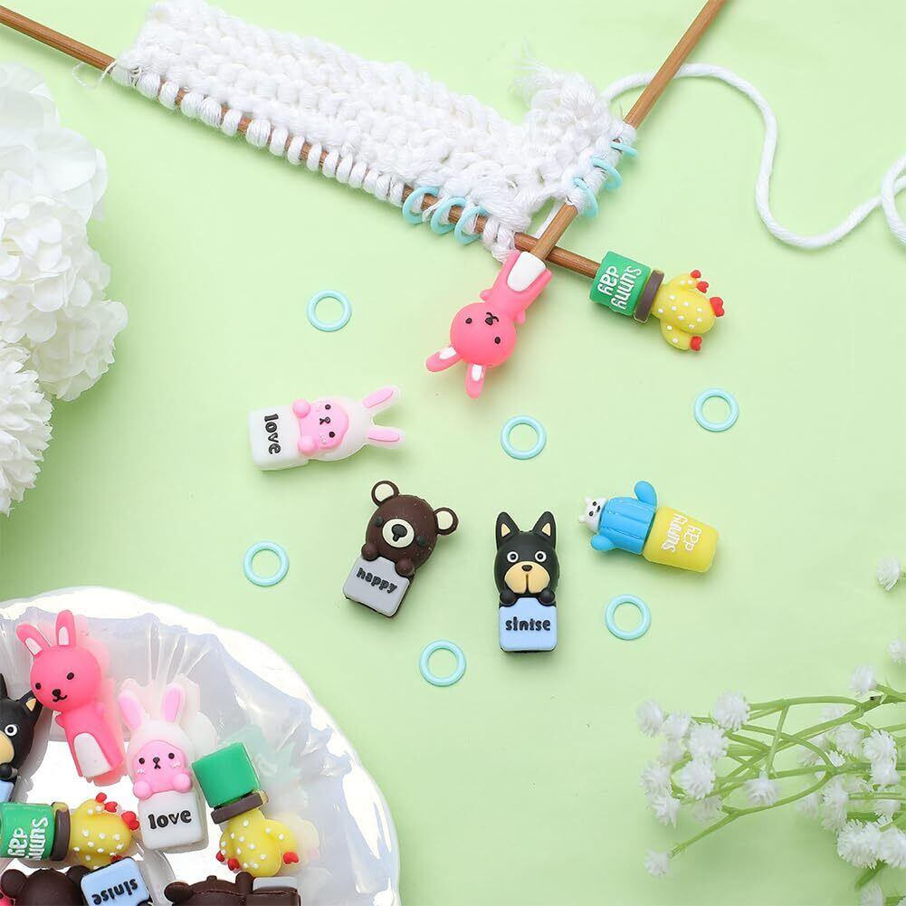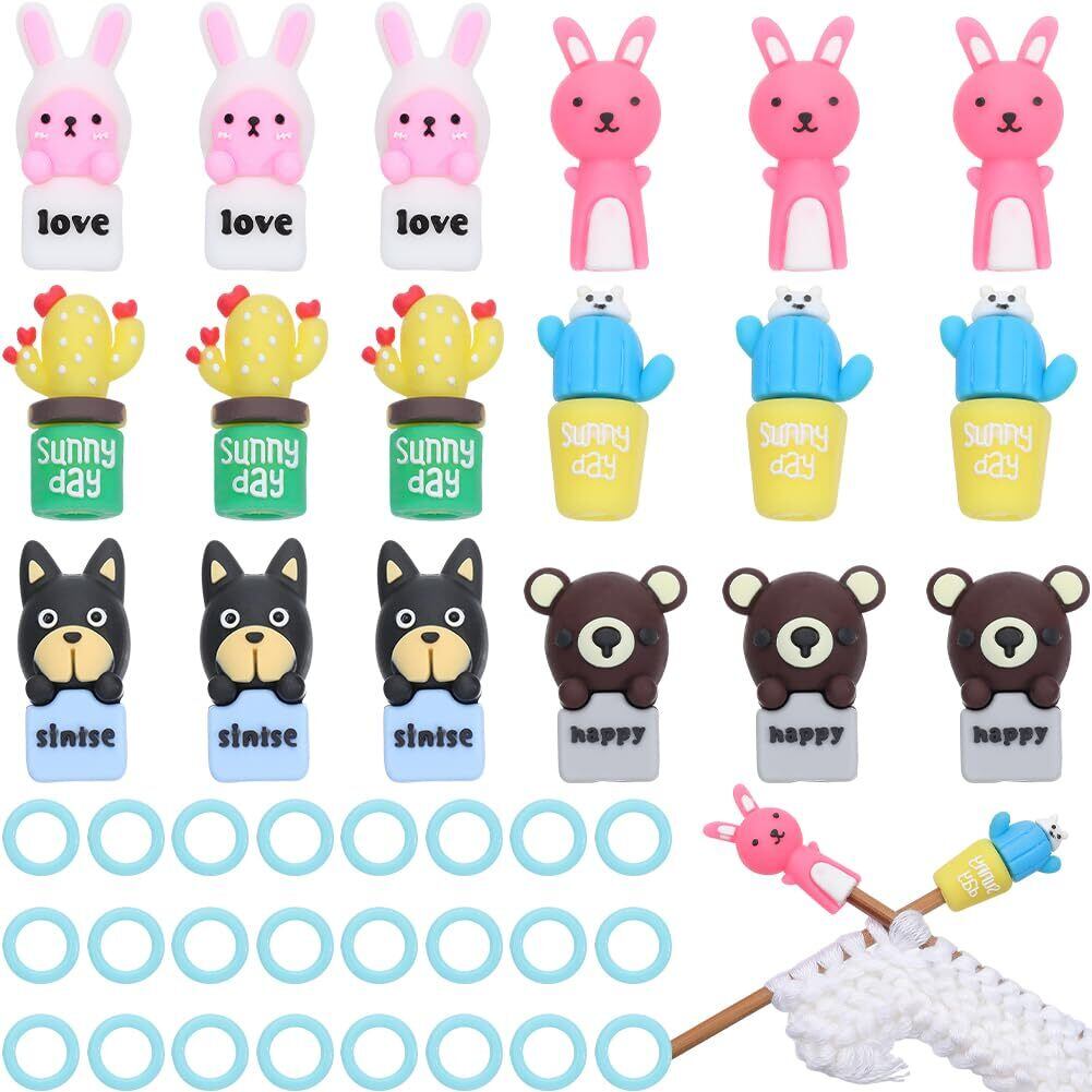 1ボックス78個編みツールキット: パッケージには18個の針ストッパーと60個のシリコンリングが含まれます。キュートで興味深いデザインと、毎日の使用ニーズを満たすのに十分な量を備えています。 周りの人たちと共有することもできます.
