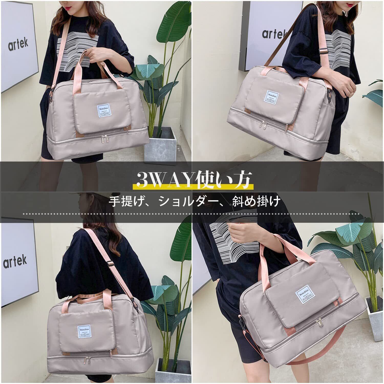 折りたたみ ボストンバッグ レディース 人気 修学 旅行バッグ 大容量 40L 1泊2日 軽量 キャリーオンバッグ 折り畳み 4way アウトドア ゴルフ スポーツバッグ 女性 ジムバッグ シューズ収納 水泳バッグ 乾湿分離 防水 旅行カバン 2泊3日 トラベルバッグ 機内持込 A4 バッグ ライトグレー