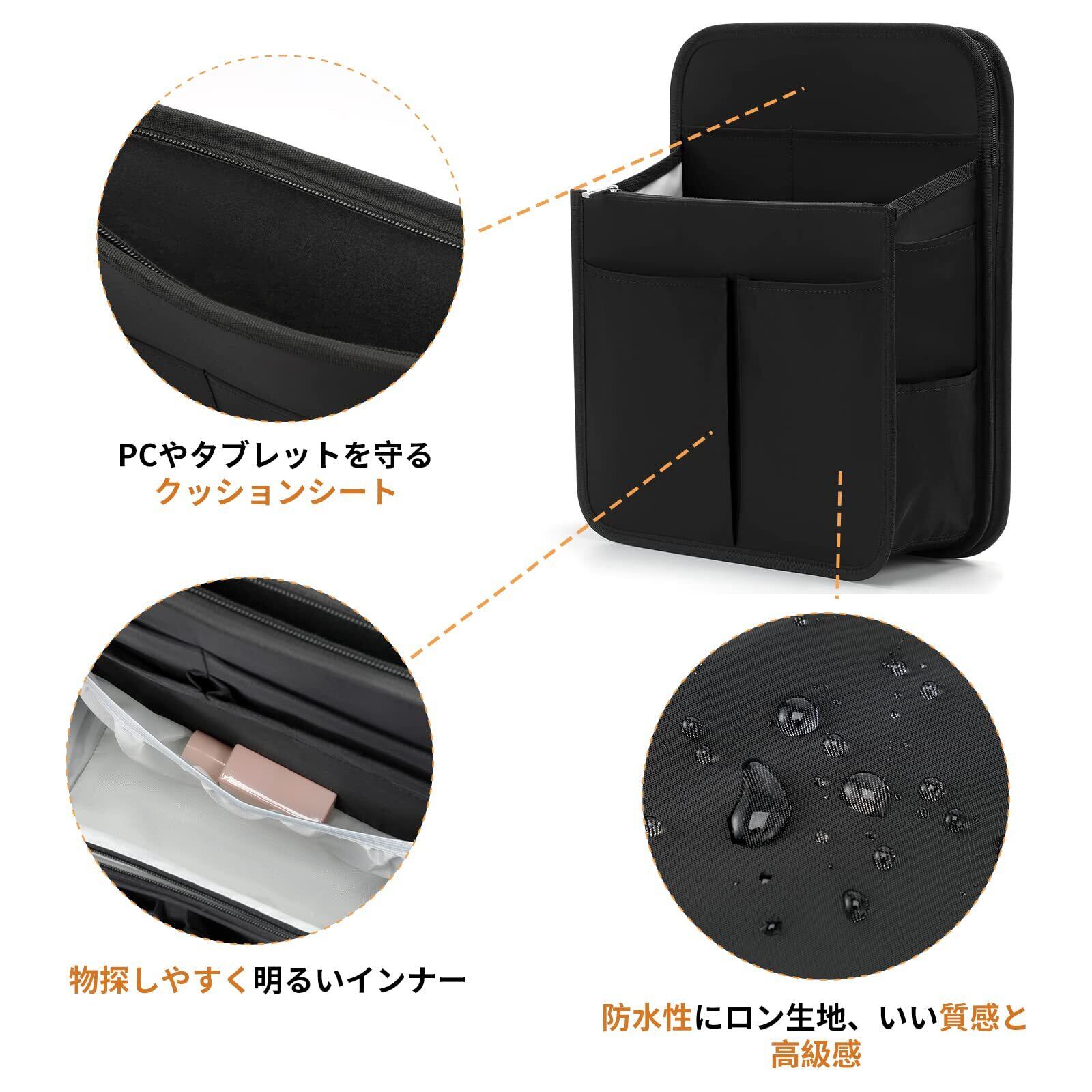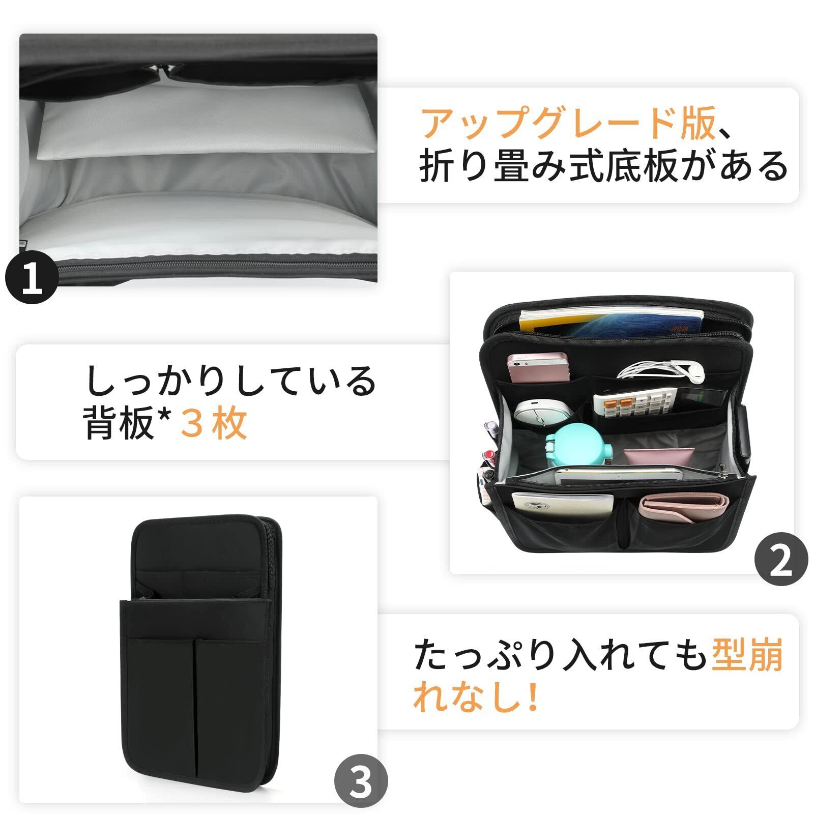 【超軽量】バックインバックは自立している分、多少に重さが感じますが、持ち運びなら気にならない程度です。リュックの重さをそれほど変わらないので持ち運びにも苦労しません。バッグからバッグへの入り替える簡単で、ママバッグとしても便利です。【側/後ろにチャックあるリュック】側に日常小物を入れるポケット6つあり。口金リュックの両側スペースにも機能させるし、側/裏にチャックが付いたリュックの中身出し入れもやすくなります。通勤通学、海外旅行など、途中で使う小物が多い場合に適しています。