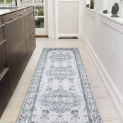 DECOMALL キッチンマット 240 洗える ペルシャ絨毯風 廊下 カーペット 60x240CM 台所マット おしゃれ オールシーズン 滑り止め 花柄 ラグ した敷 グリーン 緑 防ダニ 防臭 床暖房対応