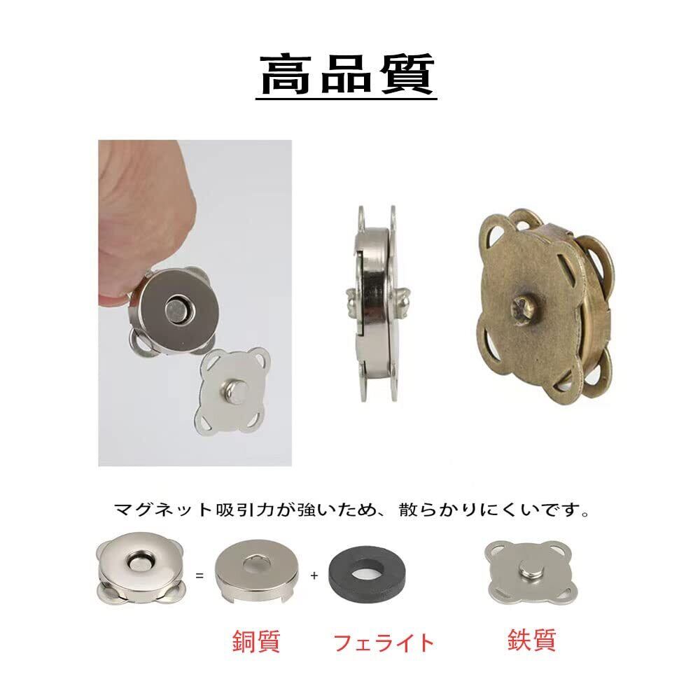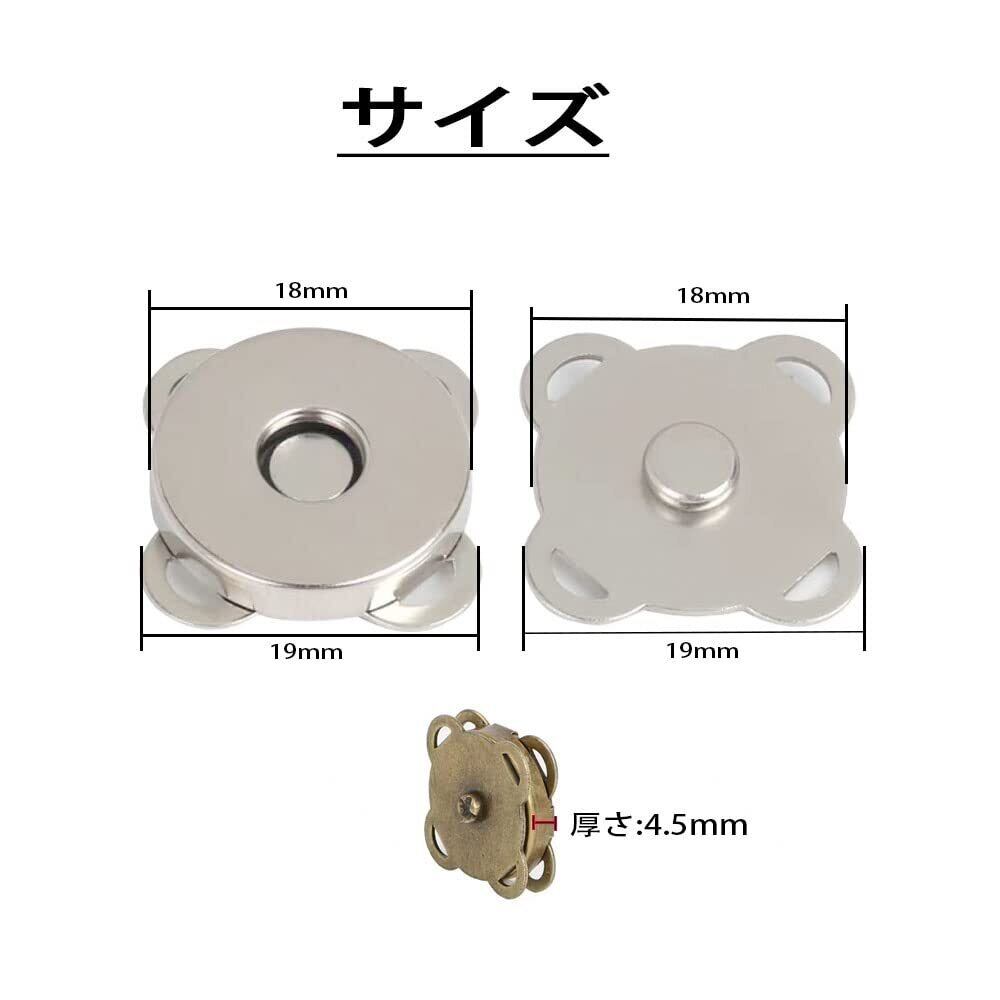 マグネットホックボタン 縫い付け 18mm 10組入り 磁気ボタン 手縫い式 留め具 DIY 手芸 シルバー