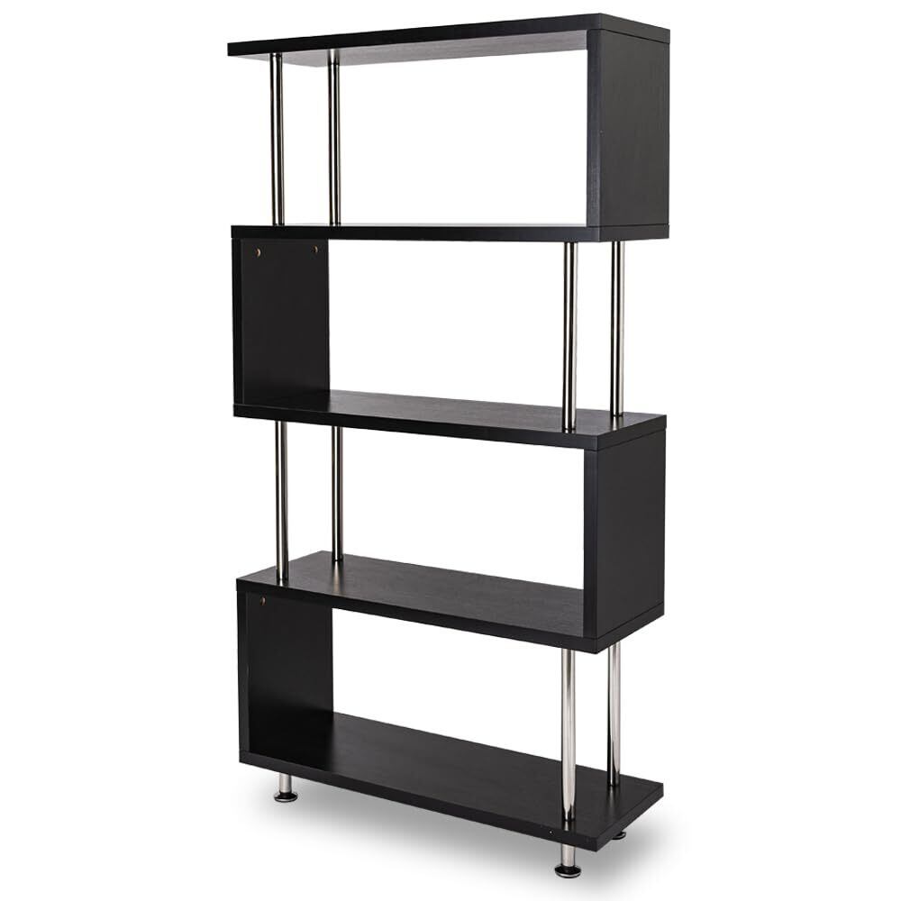 アイリスプラザ 本棚 ディスプレイラック 収納 オープンラック 靴箱 下駄箱 パイプ S字 5段 耐荷重75㎏ ブラック 幅80×奥行29.5×高さ151.4cm SRK-8315