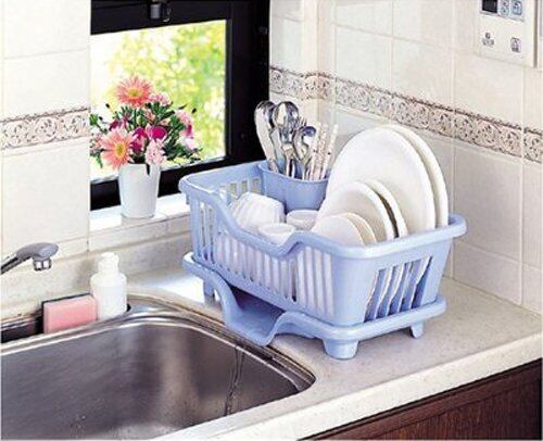 サンコープラスチック(SankoPlastic) 日本製 水切りかご 皿立て水切り 流 No.1 縦型 箸立て付き パールブルー