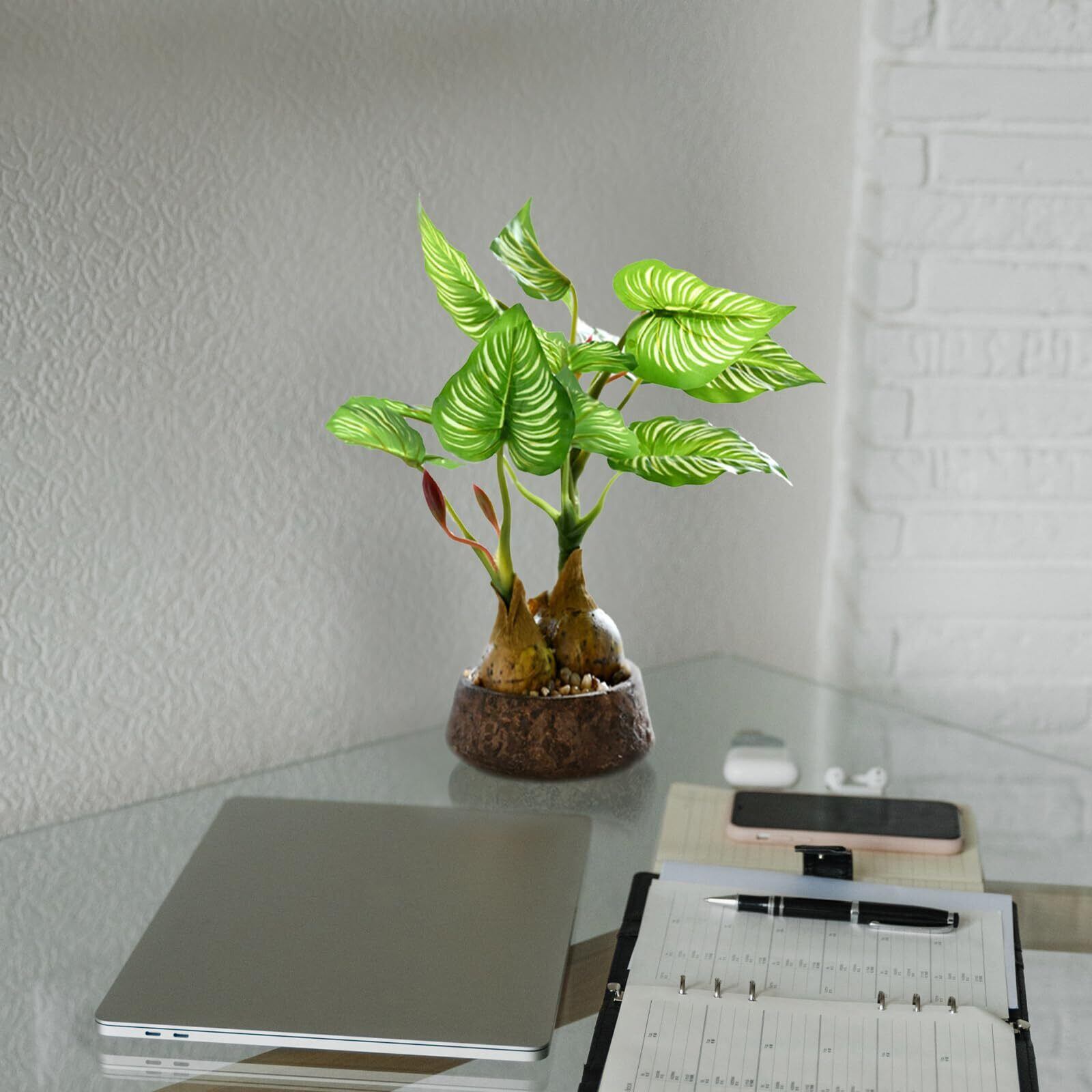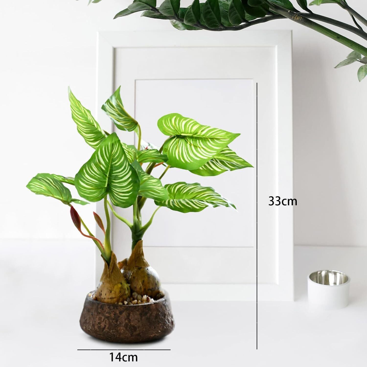 フェイクグリーン 人工観葉植物 光触媒 人工盆栽 モンステラインテリア 高さ33CM 空気清浄 鉢植え卓上 小型 植木鉢 お世話不要 室内 屋外 フェイク植物 盆栽植物 (A)