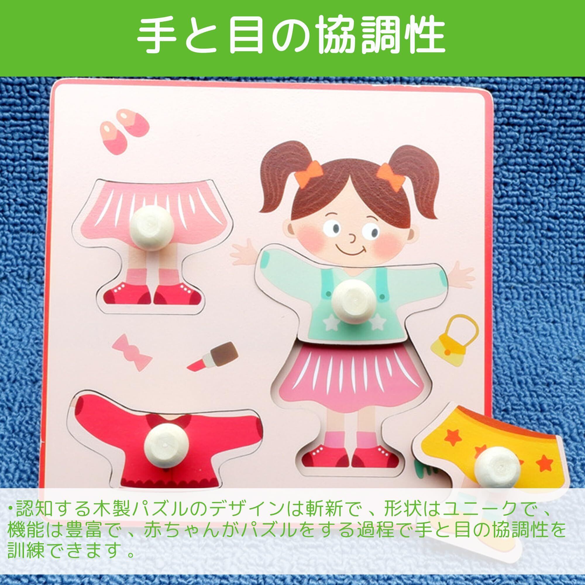 【手と目の協調性を刺激】協調性とは、目で見たものに基づいて手や指を正確に動かす能力のことです。木製パズルの底部にも形状があり、形状をマッチングさせることで、子供たちは無意識のうちに自分の手と目の協調性を訓練します。