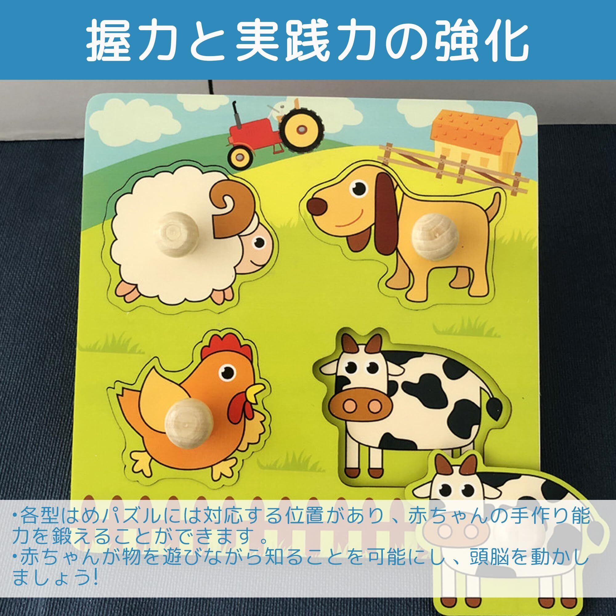 木製パズル 型はめパズル 赤ちゃん モンテッソーリ 知育玩具 1 2 3 歳幼児早期開発 形合わせ 形認識 色認知 色彩感覚 脳トレ おもちゃ 果物/牧草地/男の子/女の子のパズル 男の子 女の子おもちゃ 誕生日プレゼント(牧草地)