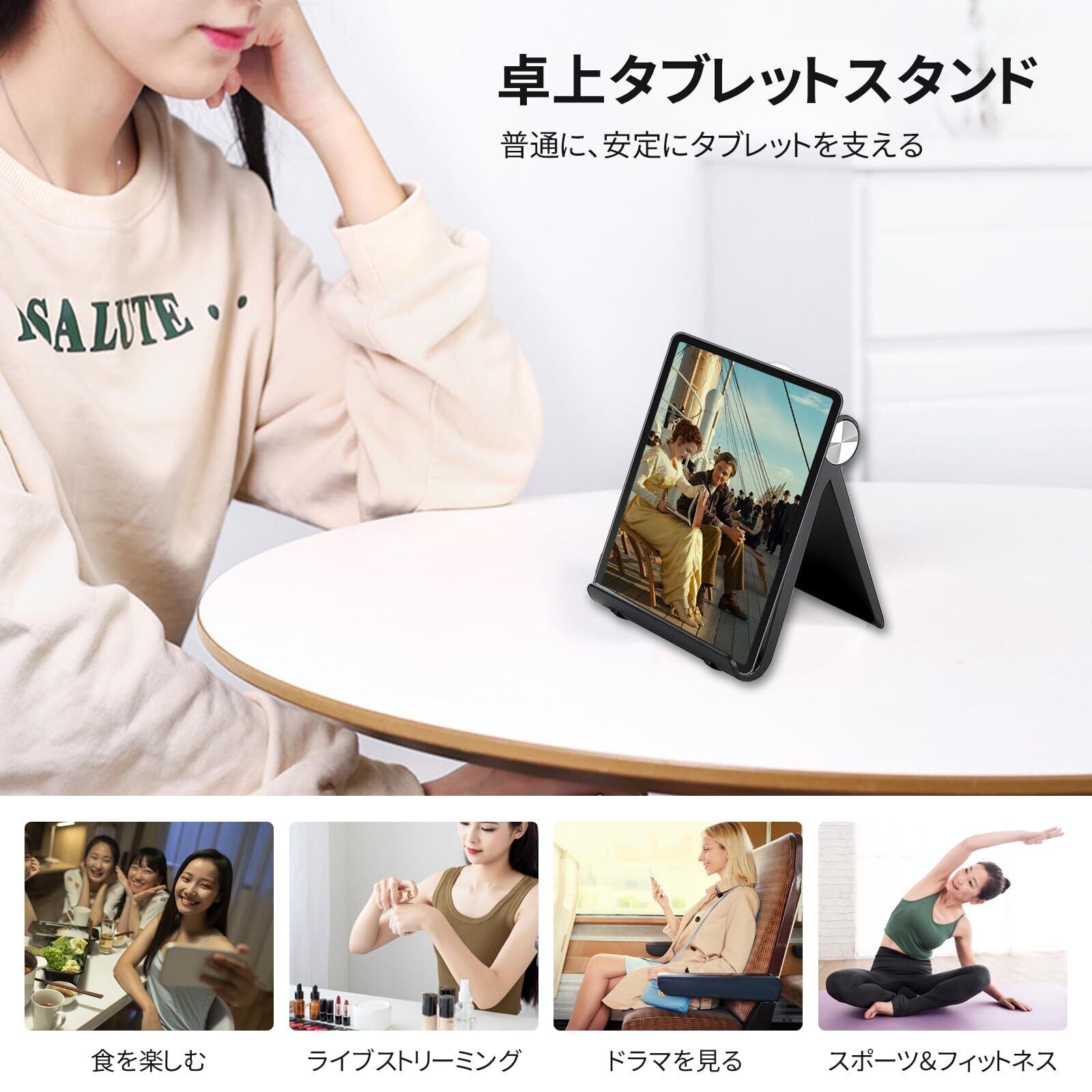 【多様なシーンで活躍】キッチン・オフィスデスク・ナイトテーブル・食卓など、様々なシーンに適用できます。仕事中でもメールやメッセージの確認ができるため非常に便利です。アニメ、映画、電子書籍、展示会、会議などでも活躍します。