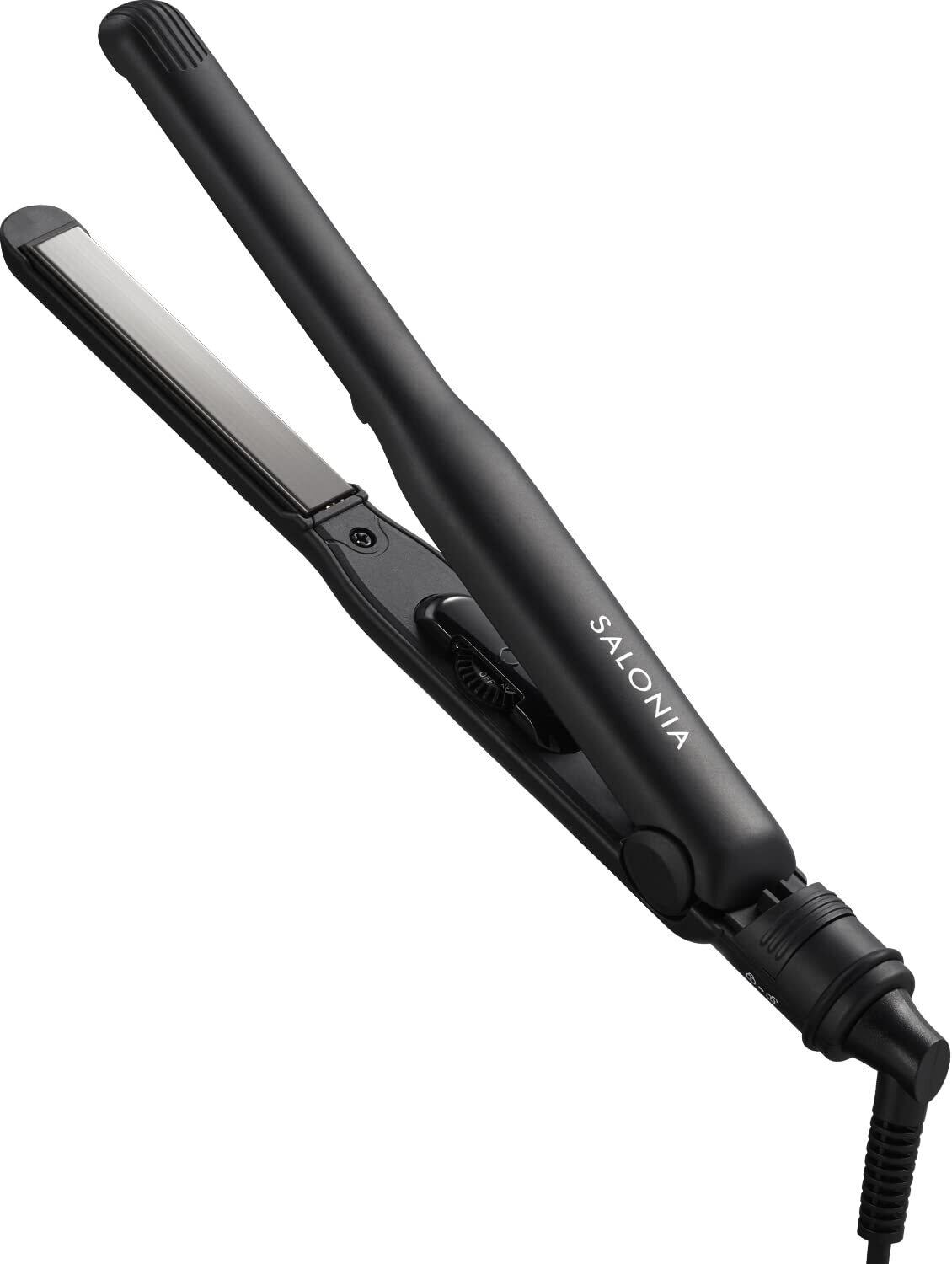 SALONIA サロニア ストレートアイロン ヘアアイロン 15mm 耐熱ポーチ付 海外対応 SL-004S ブラック